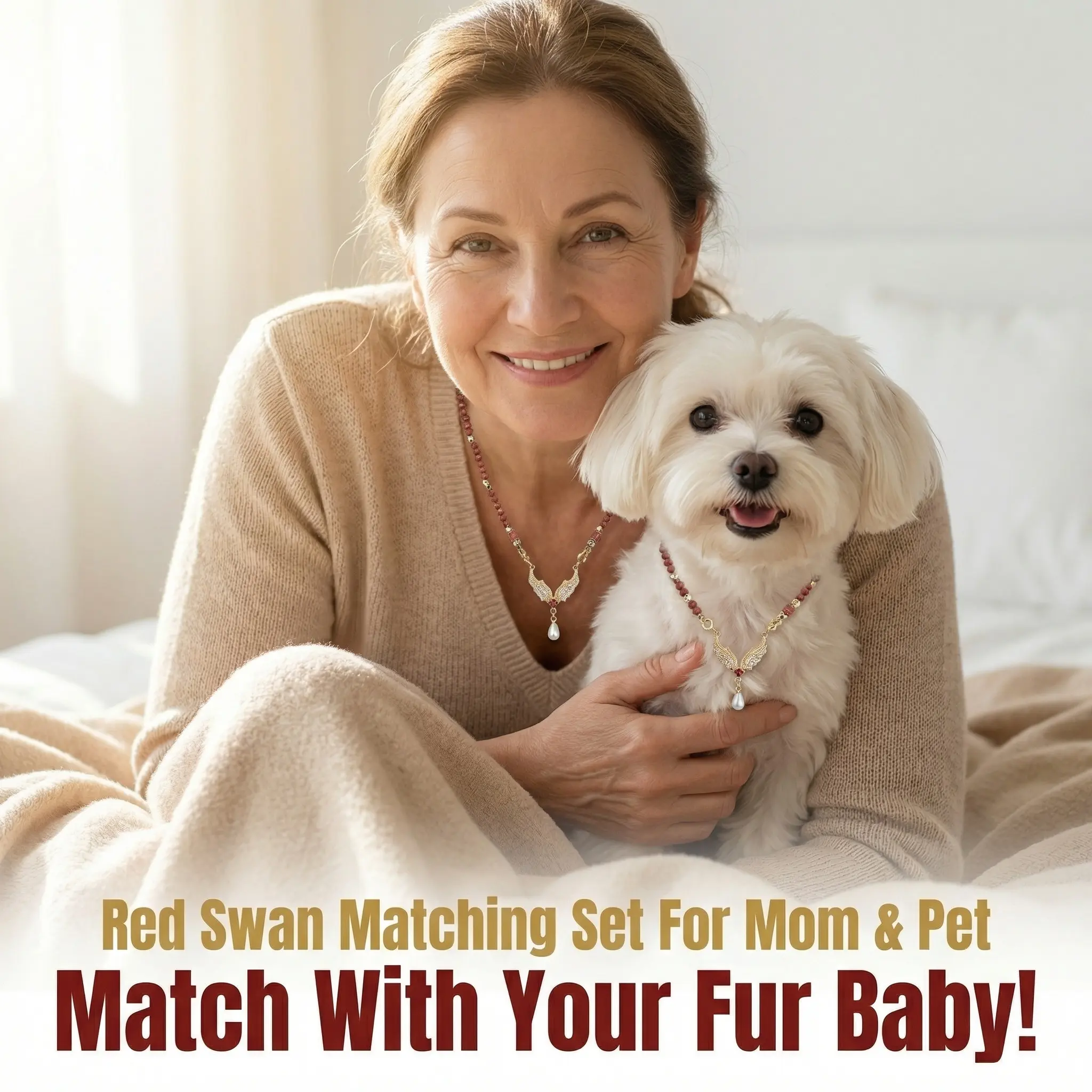 Condensing the body temperature of pets lying on their legs into cinnabar crimson, wearing both humans and pets together feels like embracing a warm furry ball in a dream.