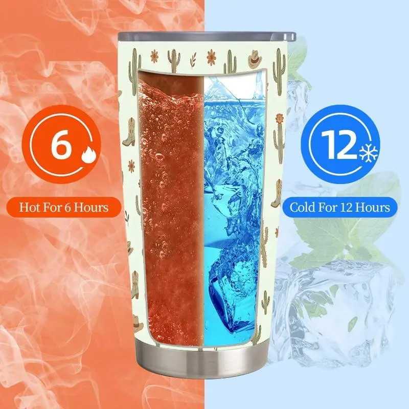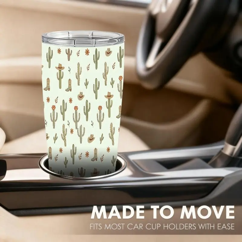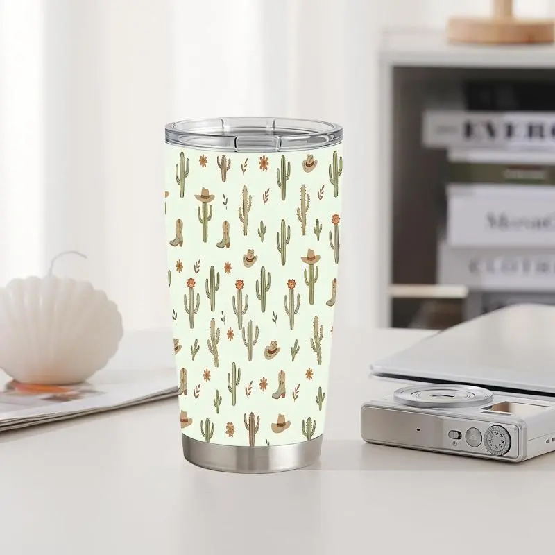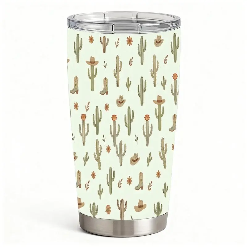 20oz Cactus Cowboy Hat Boot Flower Desert Pattern Stainless Steel Tumbler, Tumbler with Lid Double Wall Vacuum Insulated Travel Mug