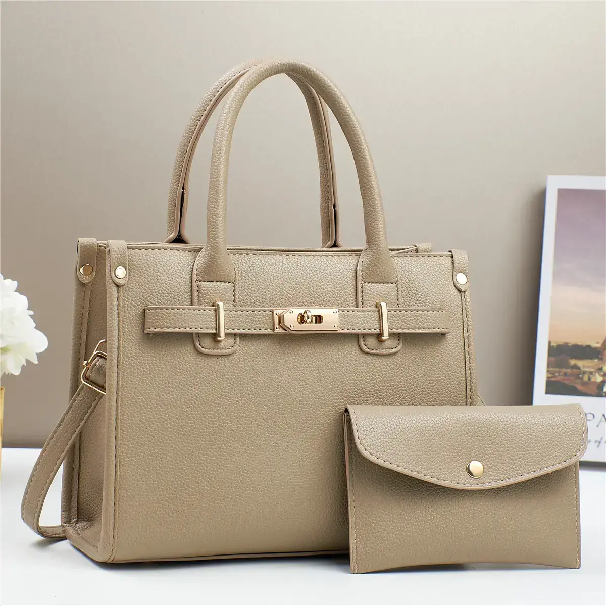 🎀 Elegant Large Capacity Tote Handbag Set 🎀 This tote handbag set is designed for women who need both style and functionality. It features a durable leather construction, ensuring longevity. The set includes a crossbody bag with a detachable pouch, offering versatile carrying options. 🌟 Stylish Hardware and Built-in Wallet 🌟 The handbag comes with stylish hardware that adds a touch of elegance. It also includes a built-in wallet, providing convenience for everyday use. This combination makes it a practical choice for women on the go. 🛍️ Key Features 🛍️
