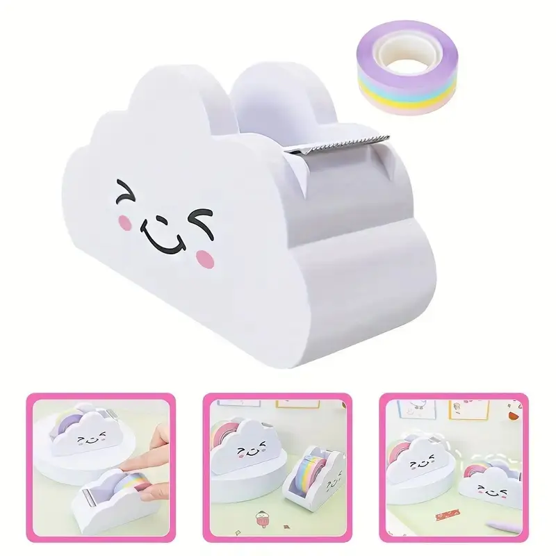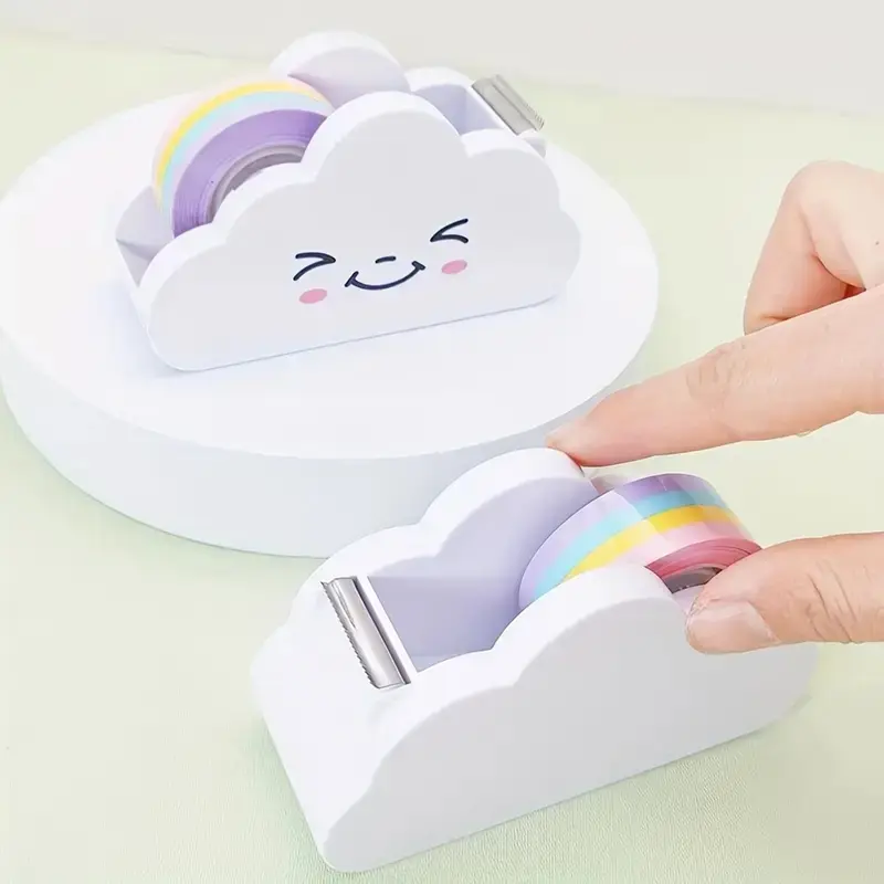 Cloud-Shaped Tape Dispenser Desktop Office Desk Tape Cutter with Rainbow Roll, Home Office School Supplies, Tape Roll Distributor