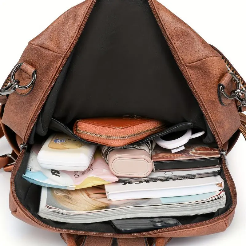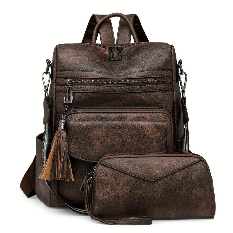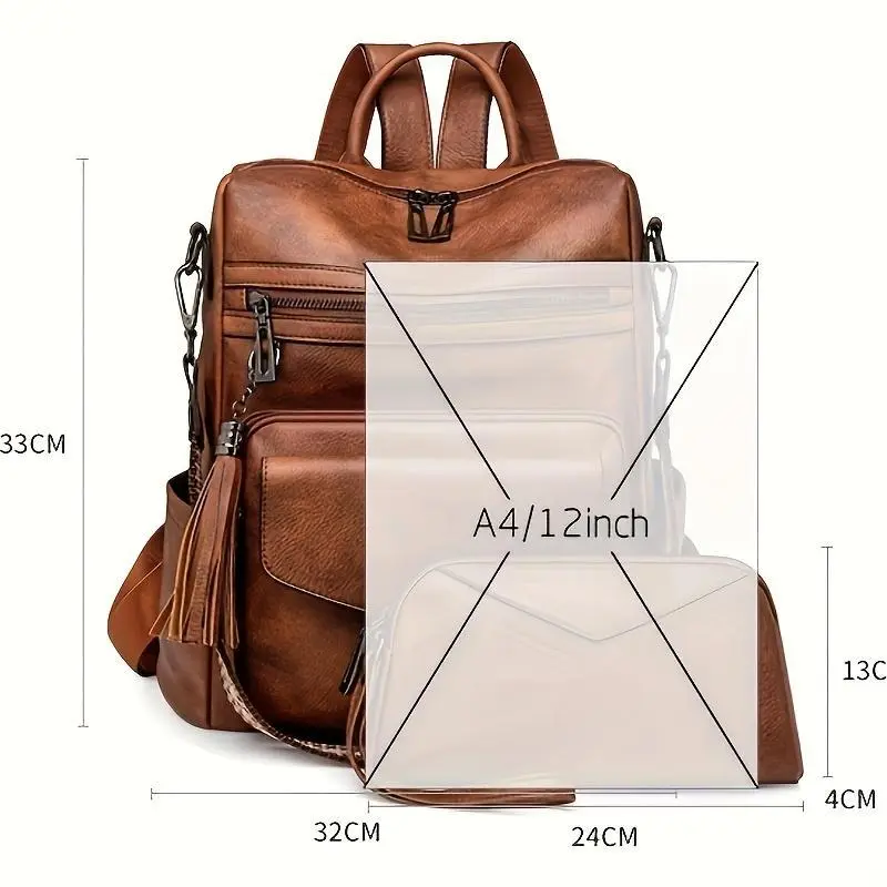 [Large Backpack Purse] Large Designer Backpack Purse Women | Fashion Tassel Ladies Shoulder Bags Travel Bag