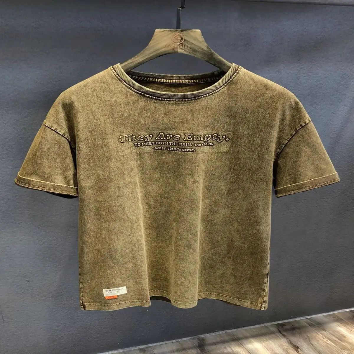 Kyn Apparel American Heavy-duty Old Wash Fading Brand Summer New Men's Short-sleeved T-shirt Thick Korean Version Half-sleeved Top T-shirt