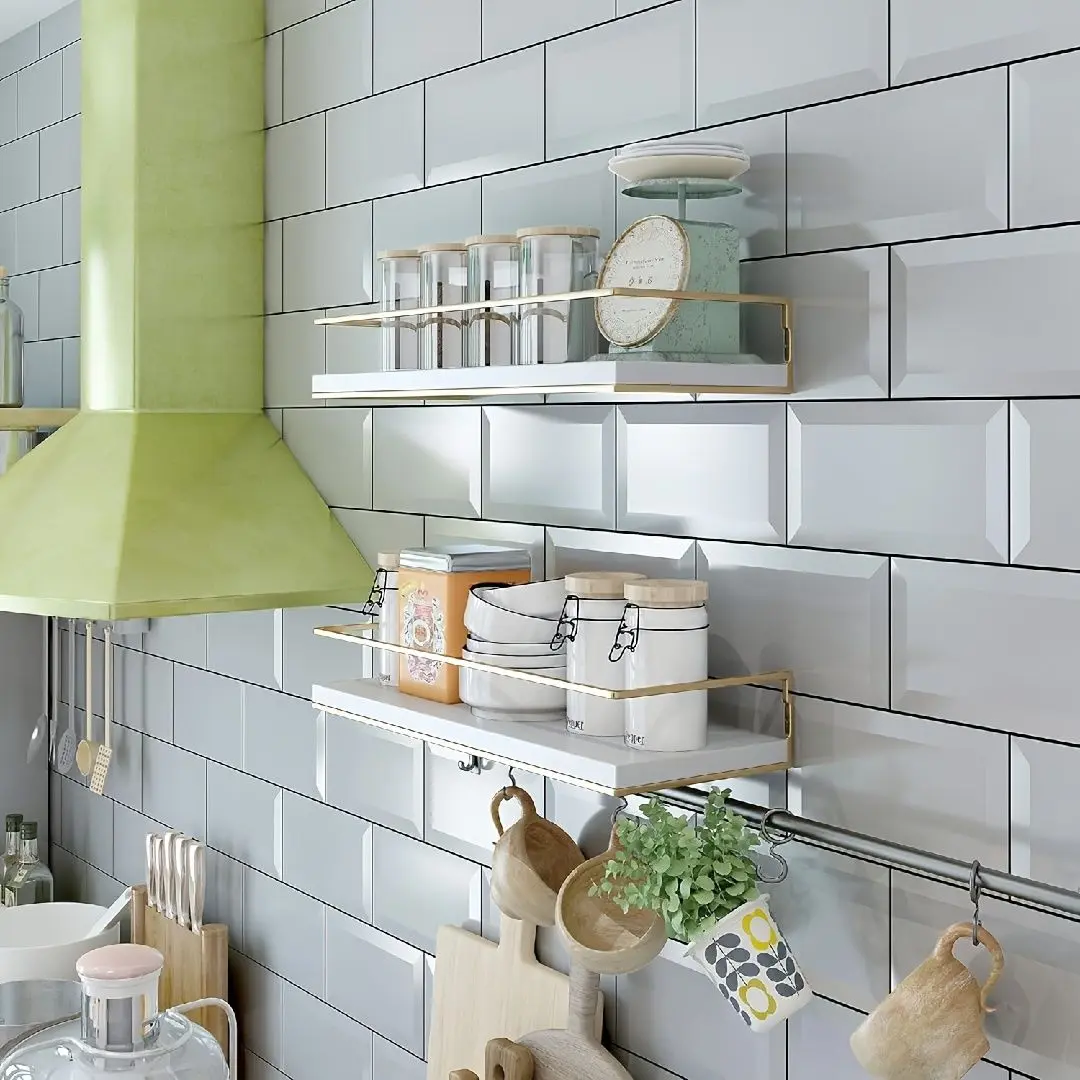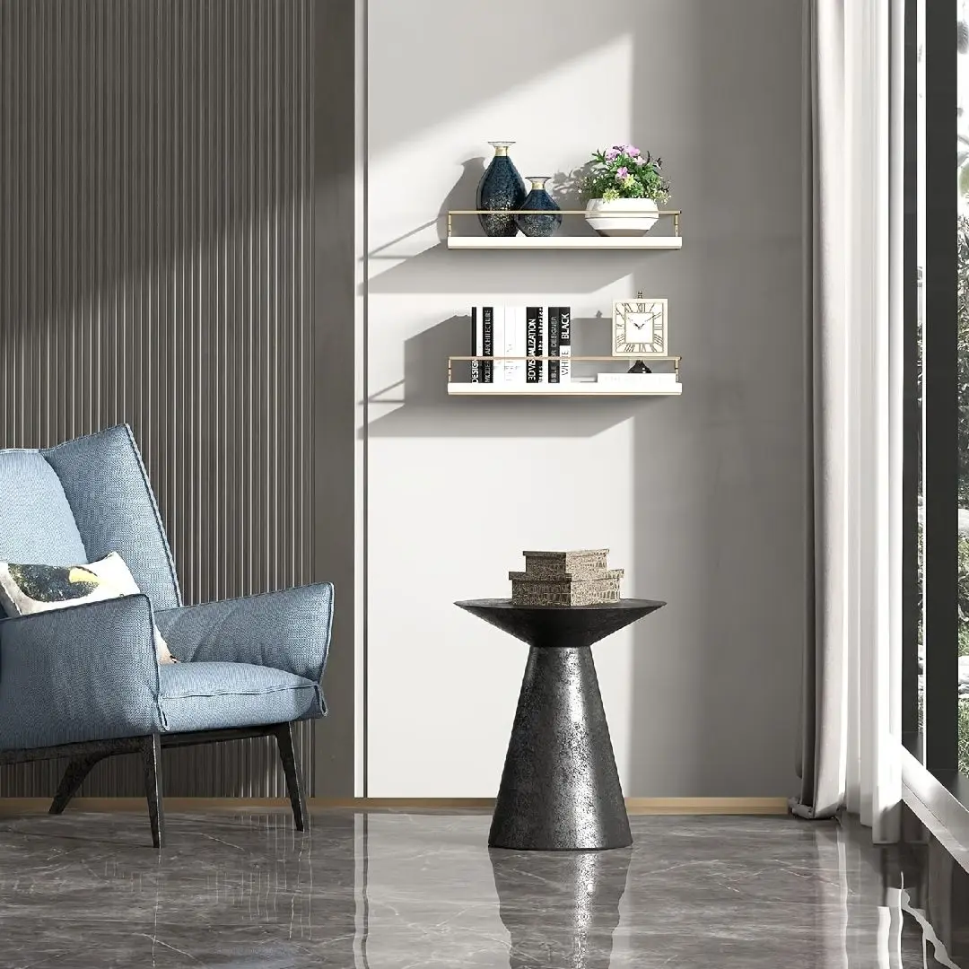 These shelves add a touch of refined style with a sleek white finish and luxury gold accents. Elevate any bathroom with a contemporary, spa-like feel. Fits modern, farmhouse, minimalist, and boho styles.