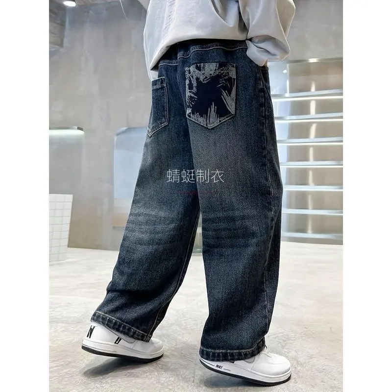 NewNew Spring And Autumn Pants for Boys, Stylish And Versatile Casual Jeans with Embroidered Designs. (Gift)11