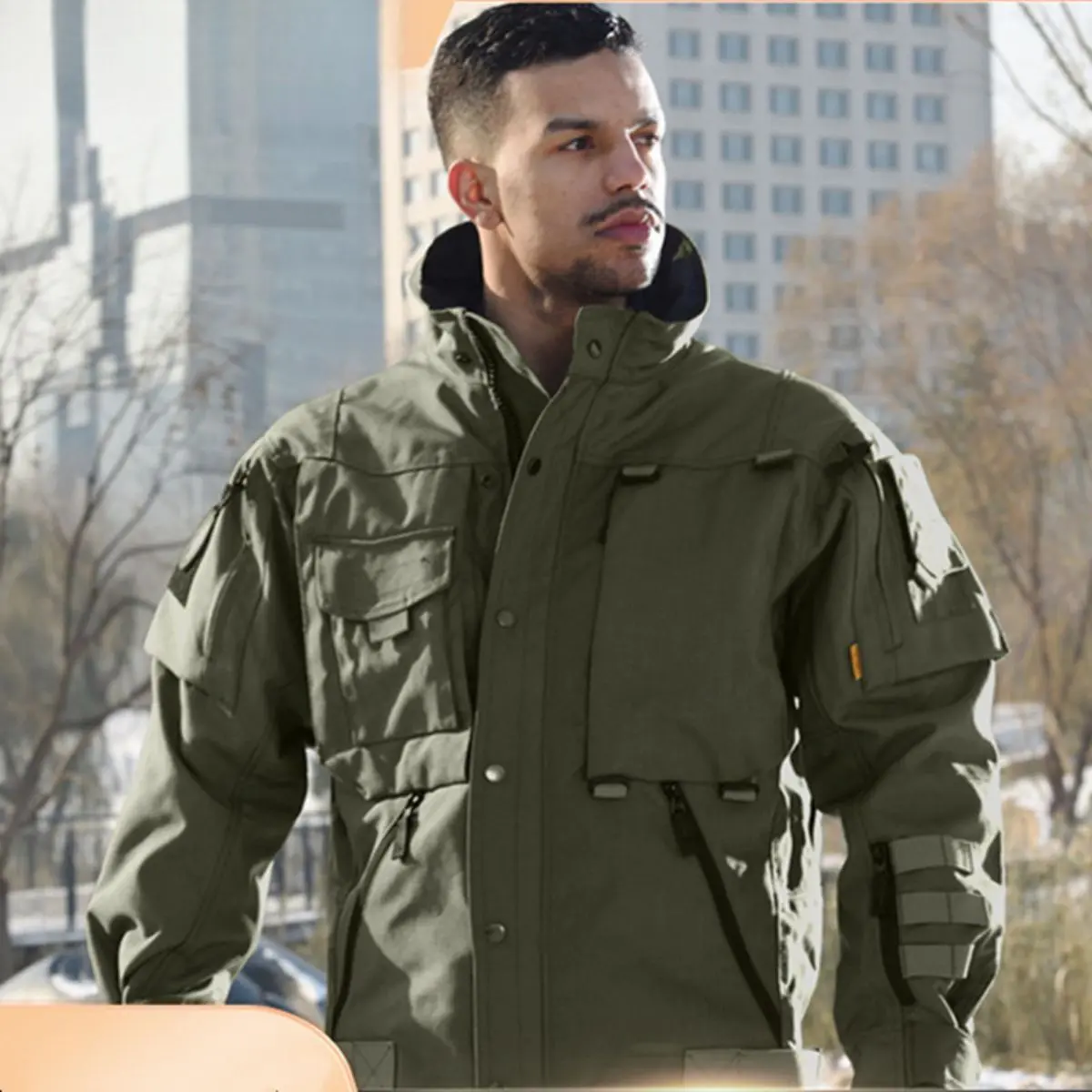 This men's assault jacket is ideal for mountaineering, hiking, and camping. It's designed for heavy-duty outdoor activities, ensuring you stay protected in harsh environments. The jacket features high-density, wear-resistant fabric with excellent windproof and waterproof performance. It's a must-have for outdoor enthusiasts and mountaineering lovers.