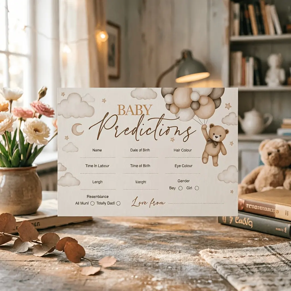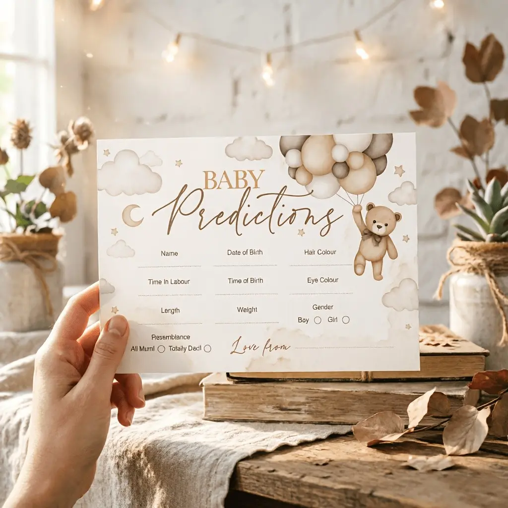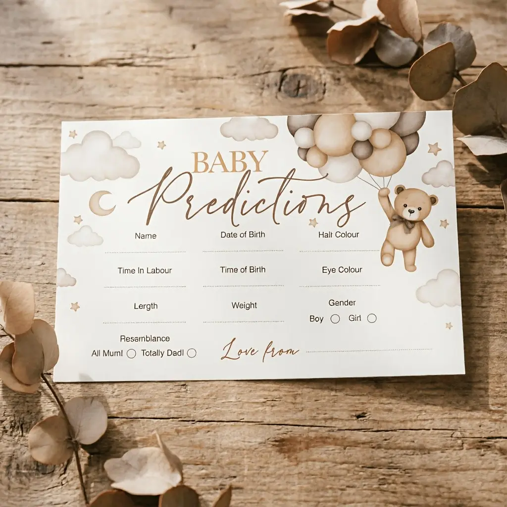 Baby Prediction Game Cards Set, Neutral Teddy Bear Party Games, Fun Baby Shower Activities, Perfect for Gender Reveal Parties