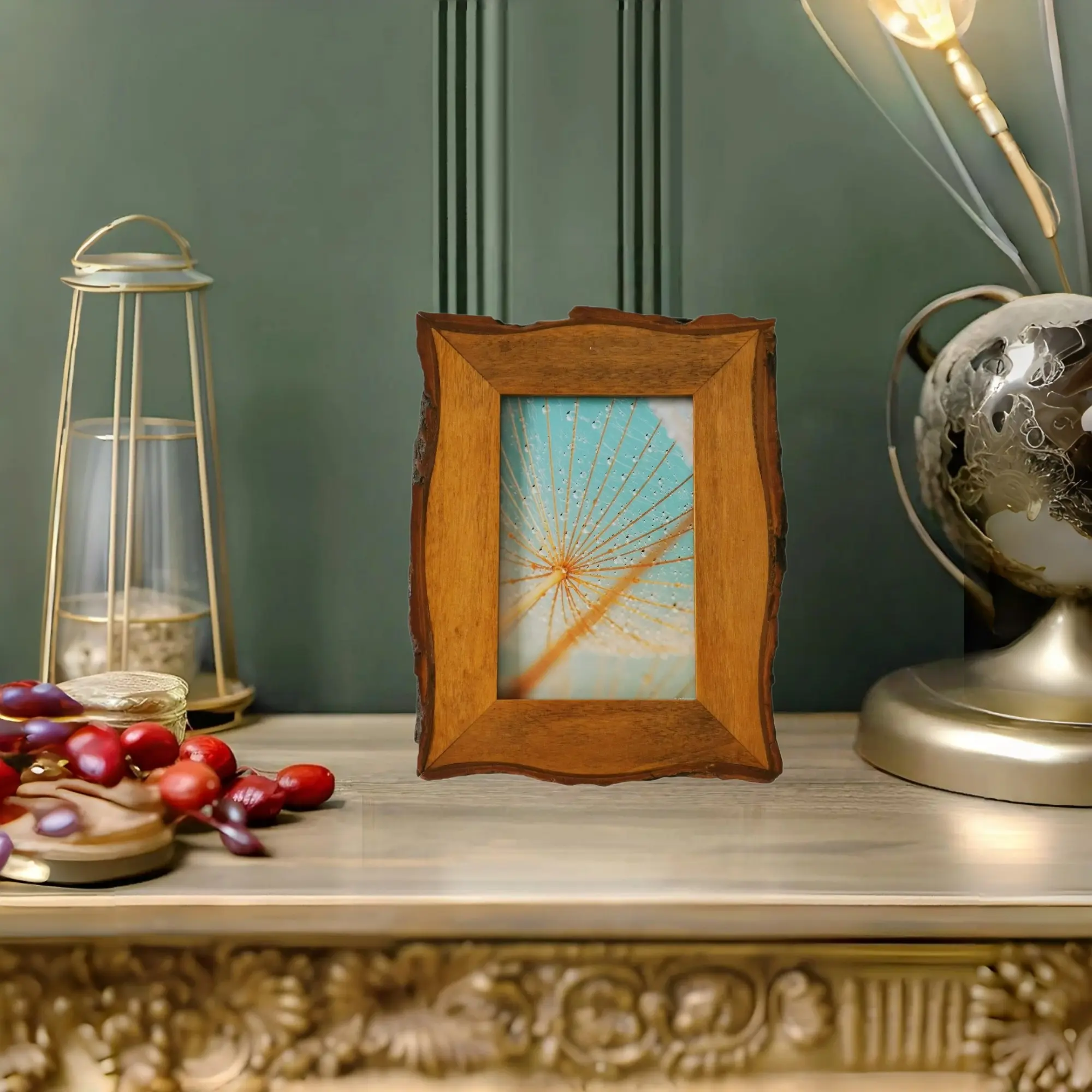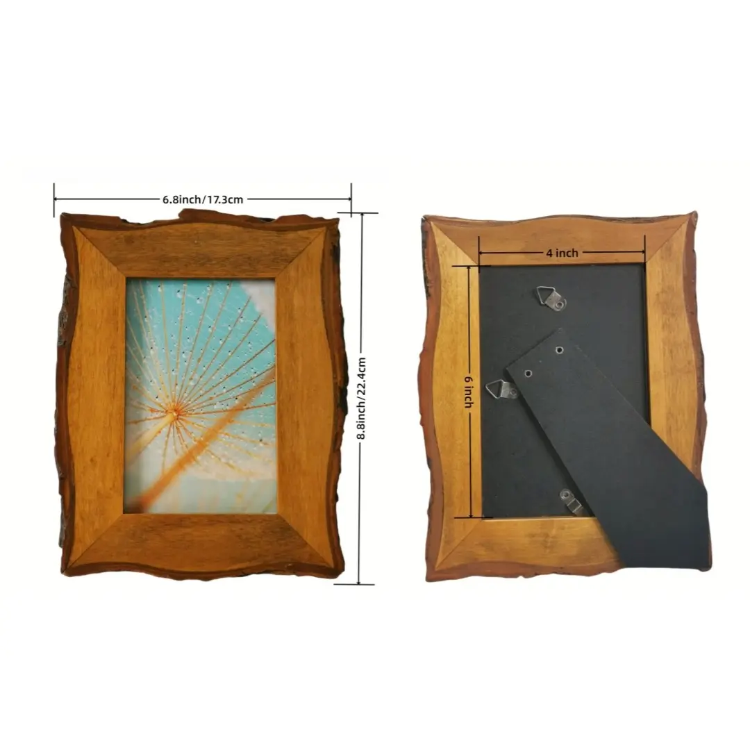 1 Pack 4x6 Live Edge Picture Frame Rustic Brown, Solid Picture Frame with Bark Edges & High Definition Glass Front, Vertical/Horizontal Tabletop or Wall Display, Natural Brown, Living room and bedroom photo wall matching, for Christmas Home Decor
