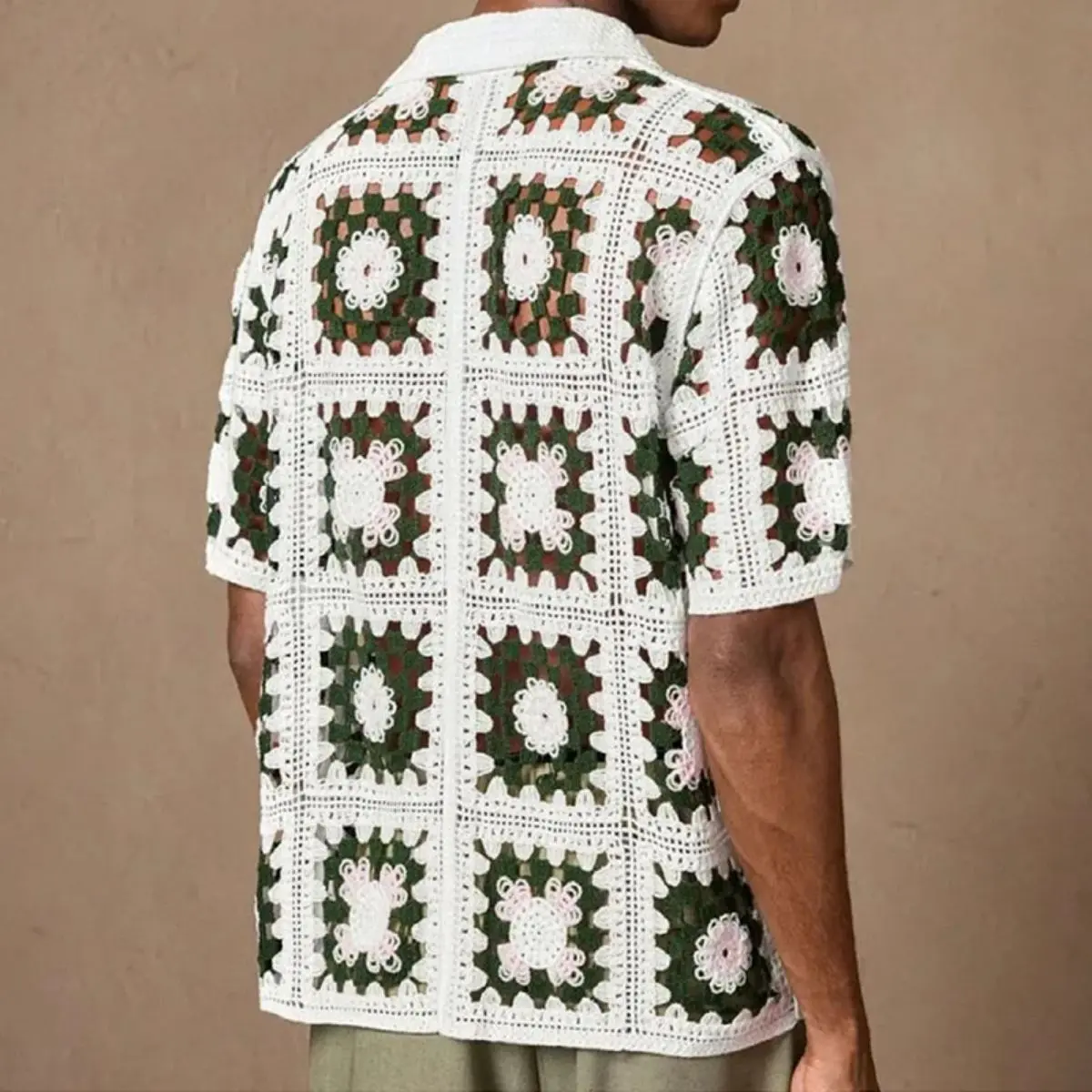 Summer Men Knitted Hollow Out Polo Shirt Fashion Short Sleeve Cardigan Tops French Retro Ethnic Premium Crochet Knitting Shirts. This mens summer knitted polo shirt combines French retro and ethnic style with delicate hollow out and premium crochet knitting details, featuring a fashionable short sleeve cardigan design for a unique and stylish look. Made of high-quality soft, breathable and lightweight fabric, it keeps you cool and comfortable all day long in hot weather, perfect for daily casual wear, dates, vacations and parties. The classic polo silhouette with retro ethnic elements highlights your personal taste and charm, easy to match with casual pants, shorts and jeans. Stylish, comfortable and high-end, this French retro crochet shirt is a must-have essential for modern mens summer wardrobe.Material: High-quality