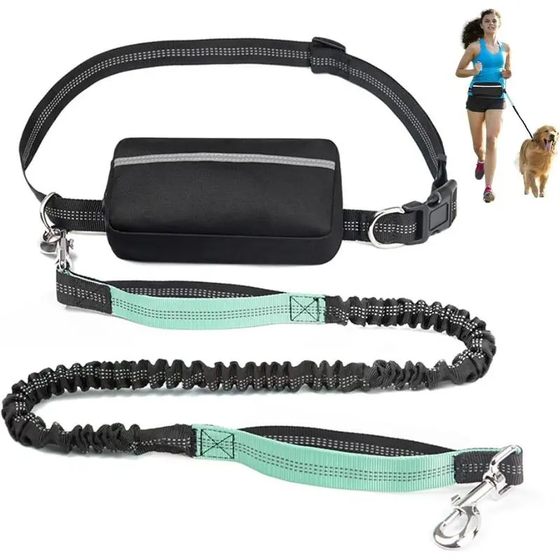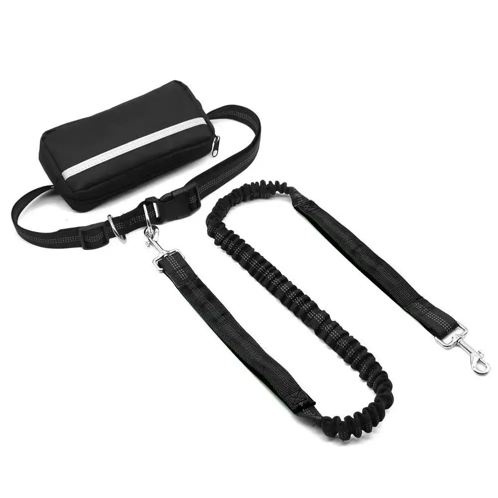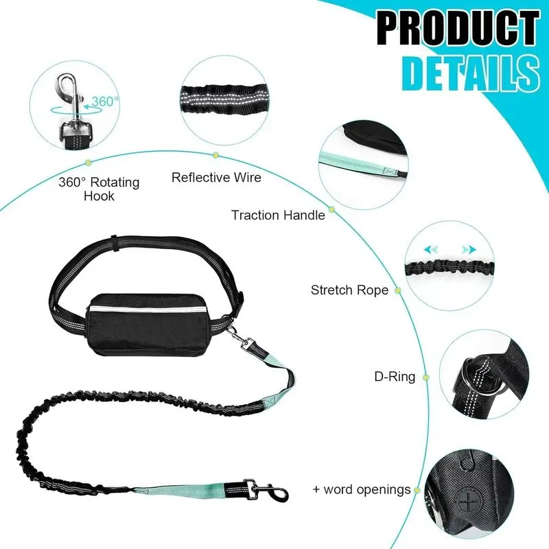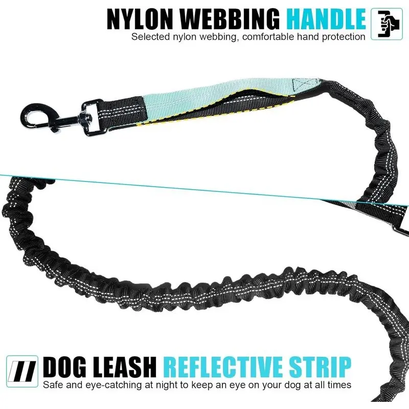 Hands-Free Dog Leash with Zipper Storage Bag, Dual Thick Handles, Durable Elastic Rope, Ideal for Walking, Jogging, Running