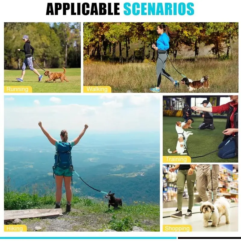 5. Hands-Free Dog Leash with Zipper Storage Bag, Dual Thick Handles, Durable Elastic Rope, Ideal for Walking, Jogging, Running