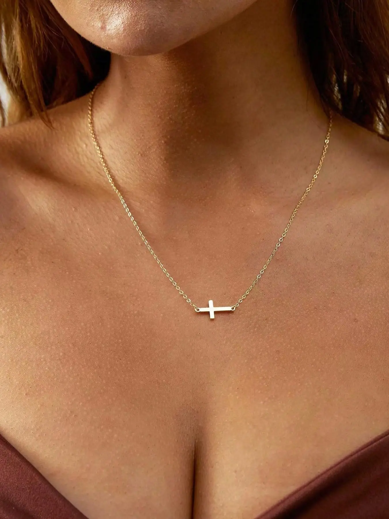 【Design Features】: Includes a double layer crucifix pendant and chain beads, adding depth and texture to the necklace.