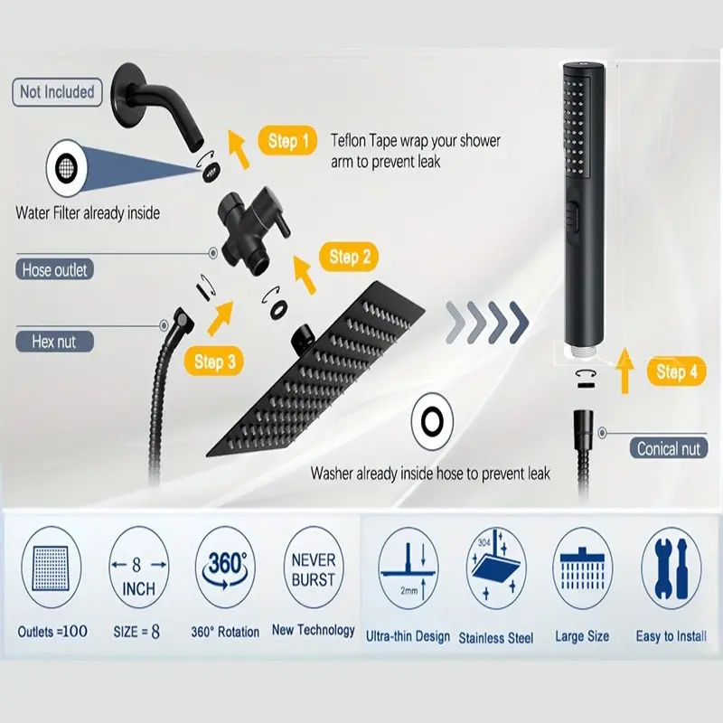 【Efficient Water Flow】: Designed to provide optimal water pressure for thorough cleansing during showers.