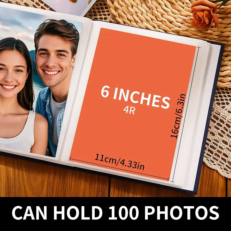 6 Inch Photo Album Holds Up to 100 Photos, Large Capacity Family Memory Book, Travel Souvenir Album, Couple Anniversary Gift, Christmas Present