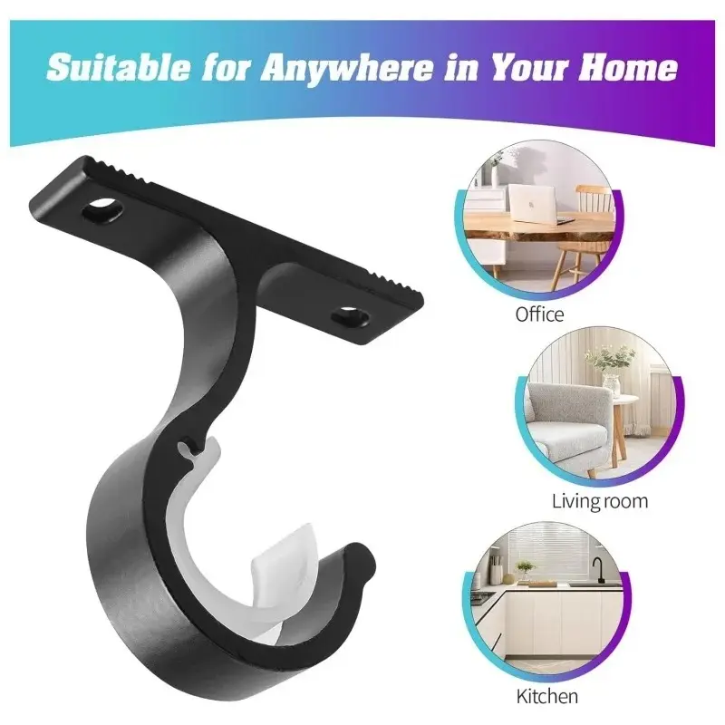 2pcs curtain rod hook brackets, can support wall-mounted shower curtains, used for hanging curtains, clothes rods, and shower rods