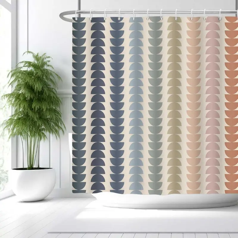 2D Flat 1Pc Rainbow Bohemian Arch Shower Curtain - High Quality Large Size 71X 71inch Pastel Pink Beige Blue Mint Green Turquoise Bathroom Decoration, Machine Washable with Grommet Top, Semi-Circular Rainbow Arch Window Design, Suitable for Bathtubs