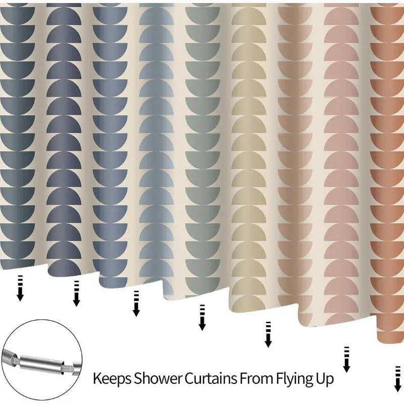 2D Flat 1Pc Bathroom Shower Curtain, No Drilling Required, Includes 12 Shower Curtain Hooks