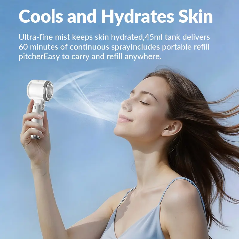 This personal mini fan is perfect for summer activities. Keep yourself cool and comfortable whether you're at the beach, in the office, or on a camping trip. The Handheld Mist Fan is your go-to solution for staying cool and refreshed.