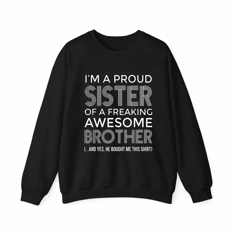 5. Vintage Style Unisex Hoodie – Proud Sister and Awesome Brother Funny Round Neck Sweatshirt