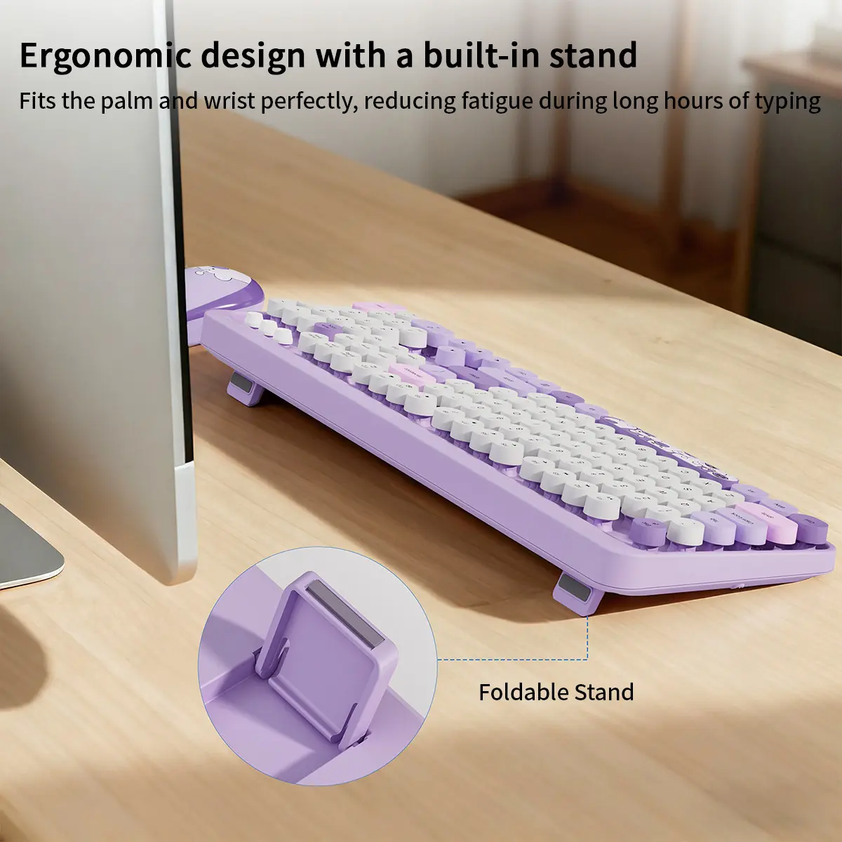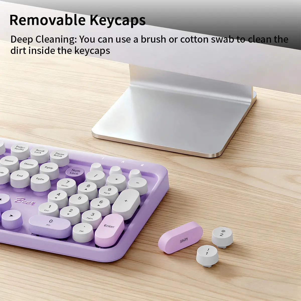 5. MOFii 1 Set Wireless Keyboard and Mouse Combo, Purple Cute Bear Round Keycaps, High-Appearance Office Keyboard Mouse for Girls, Universal for Laptop and Desktop, US Qwerty (Batteries Not Included)