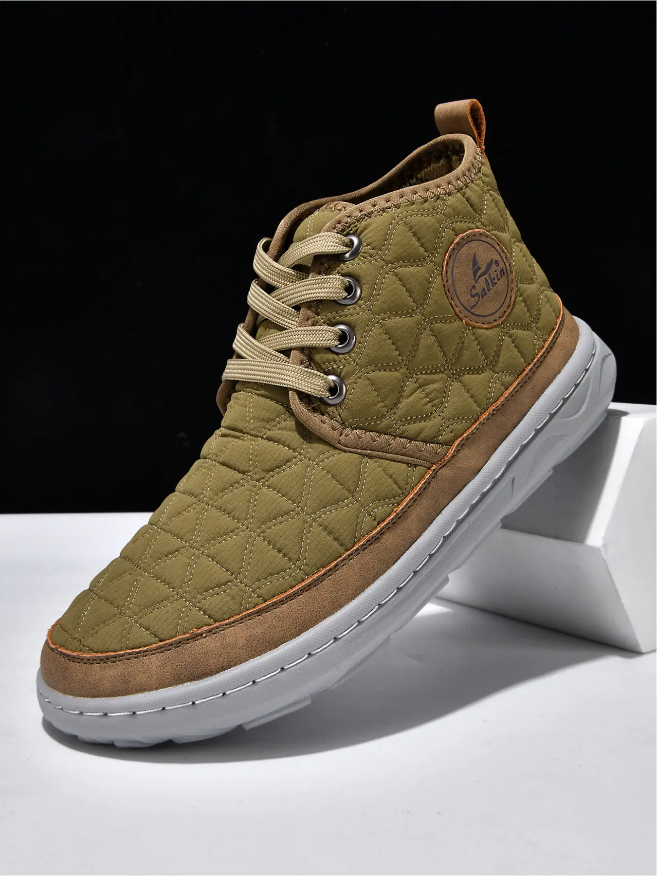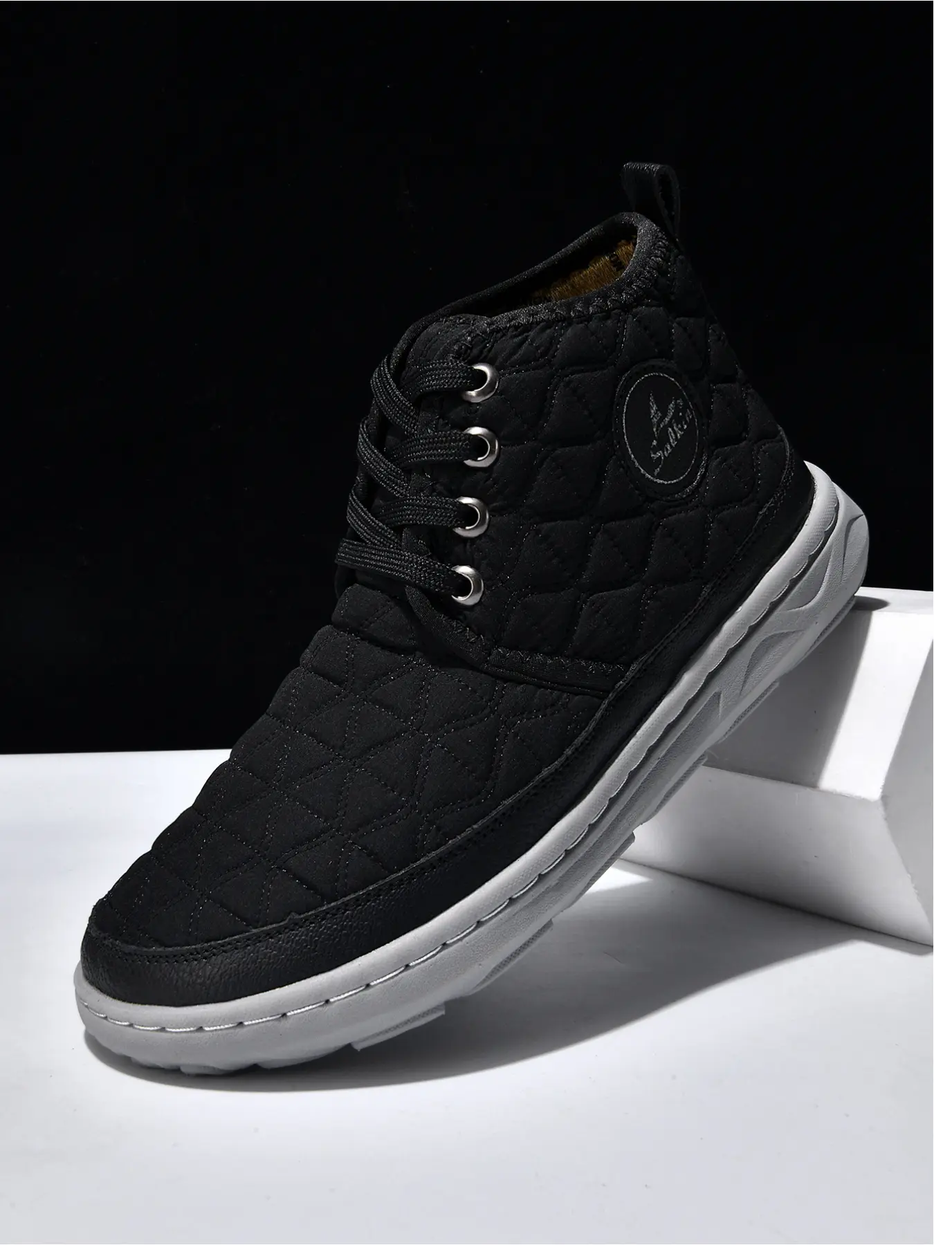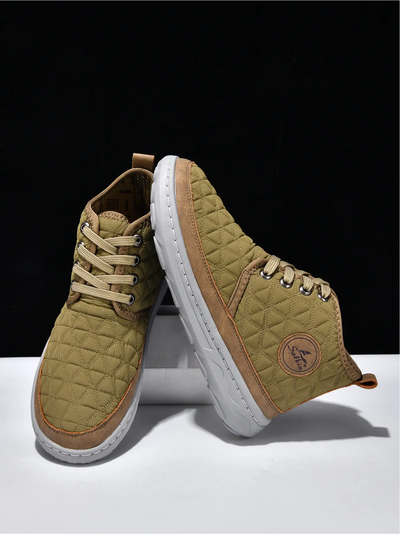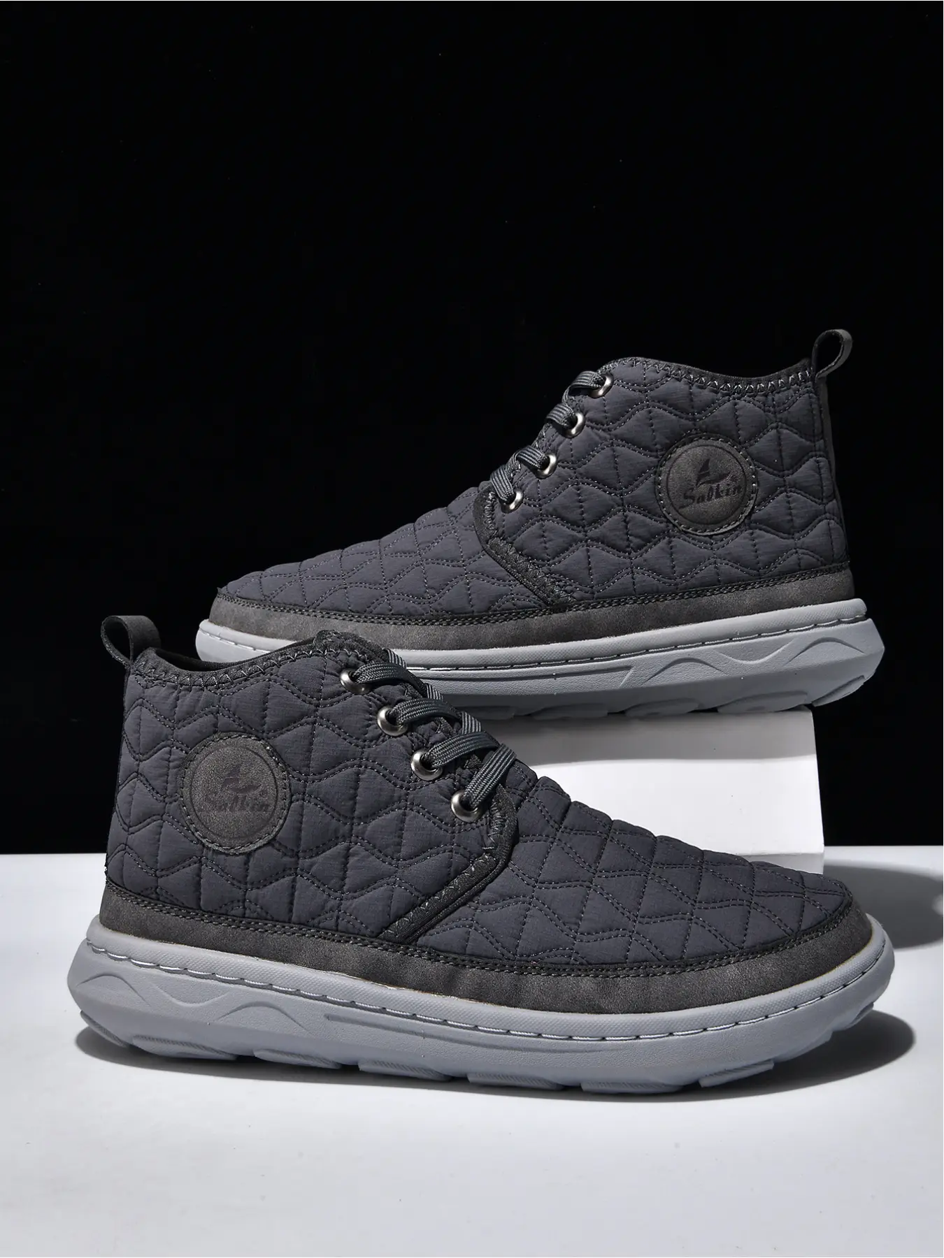 Men's Solid Color Quilted High-Top Casual Shoes, Lightweight Non-Slip Outdoor Commuter Shoes, Soft Sole Sports Sneakers