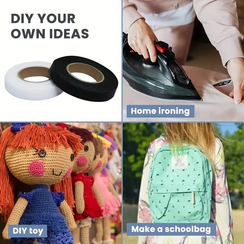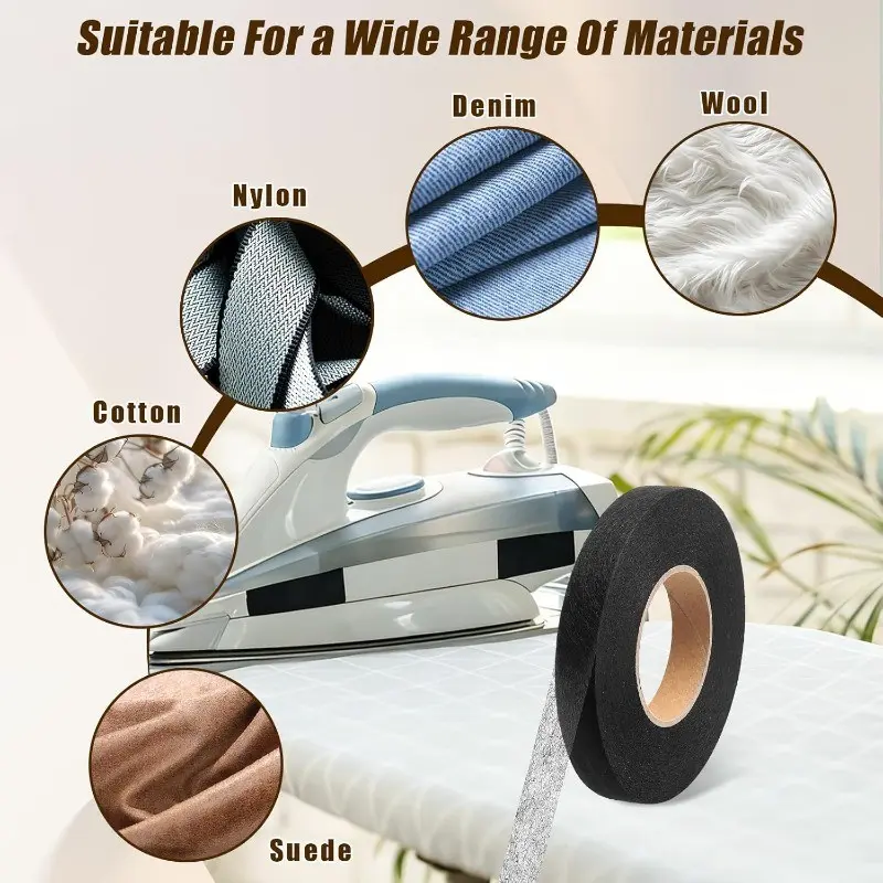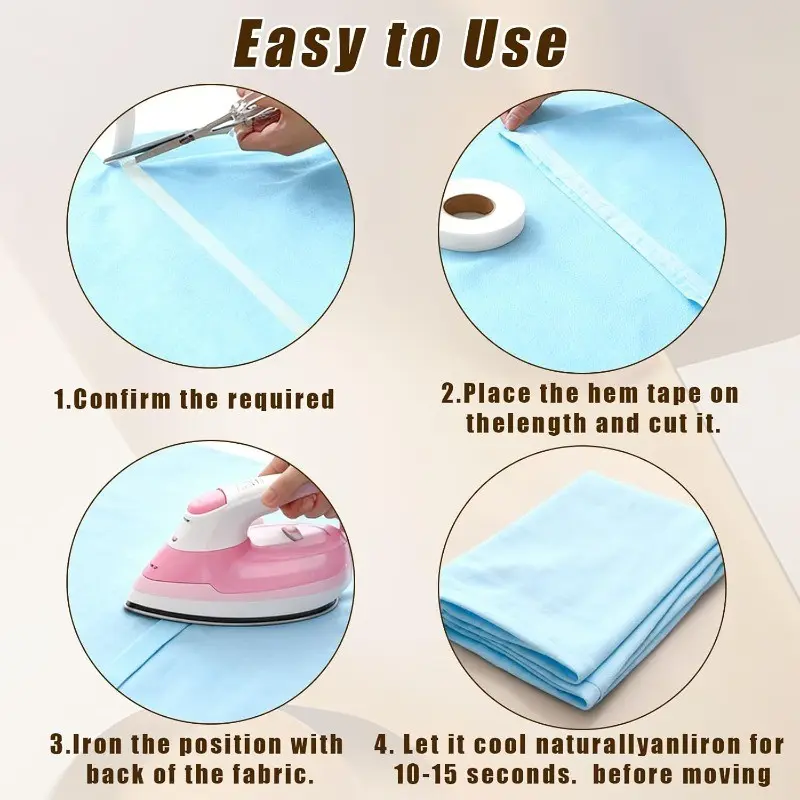【Iron-On Application】: Easily apply the tape with an iron, providing a seamless finish for patchwork and clothing edges.