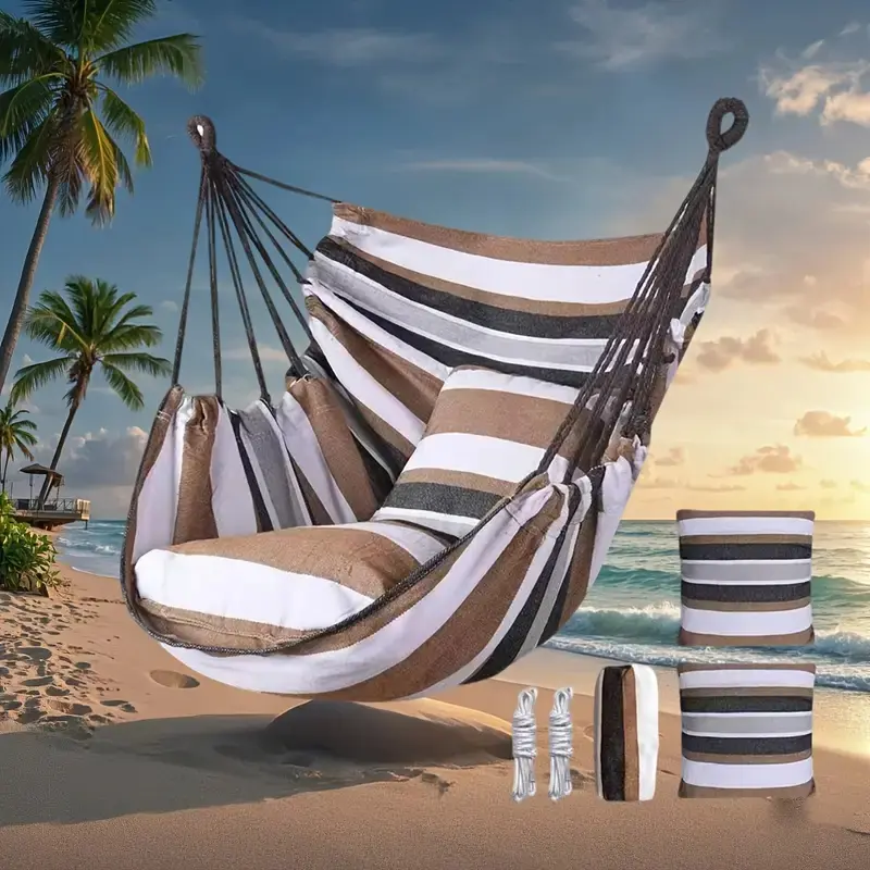 1pc Hanging Bed Swing Seat, Foldable Hammock Chair, Colorful Striped Comfortable Swing Chair, Best Camping Gear Outdoor