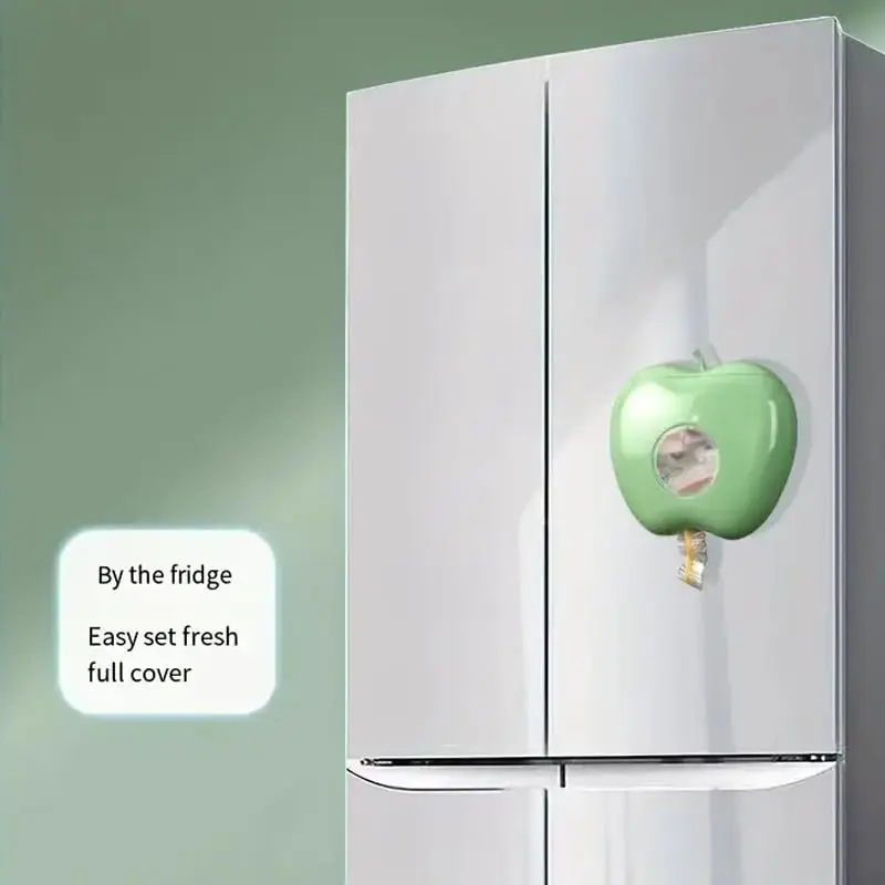 Plastic Wrap & Food Storage Bag Dispenser — Includes 100 Sheets of Plastic Wrap | Multi-functional, Wall-Mounted Kitchen Organizer | No-Drill, High-Capacity, Apple-Shaped Storage Box for Kitchen & Bathroom (Green + 100 Sheets)