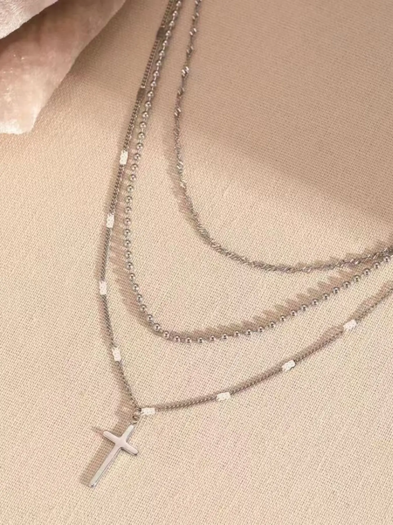 【Multi-layer Design】: Features a multi-layer cross pendant necklace, adding depth and dimension to your look.