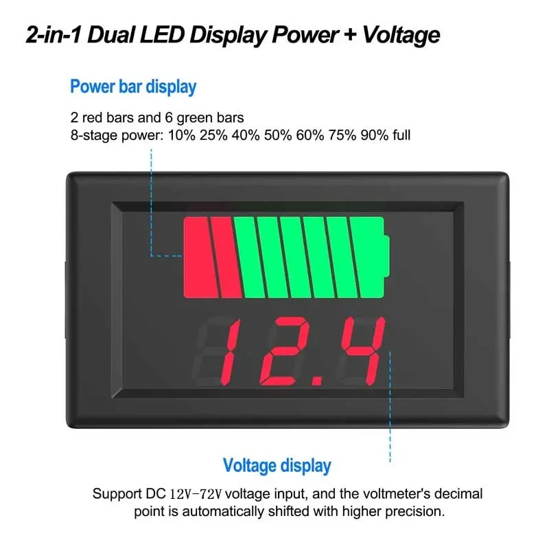 Battery Voltage Charging Capacity Tester, Suitable for 12V-72v Batteries, Essential Tool for Electrical Fault Diagnosis