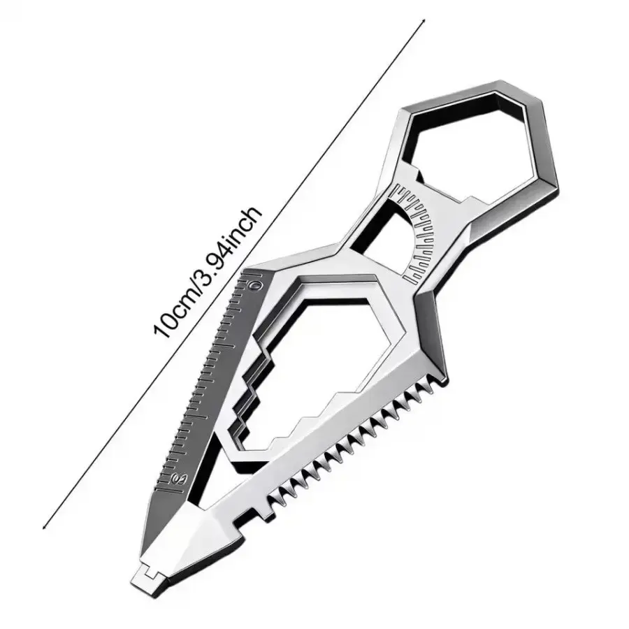 9-in-1 Stainless Steel Keychain, Portable Bottle Opener, Protractor, Ruler, Screwdriver, Wrench, Pocket EDC Tool.