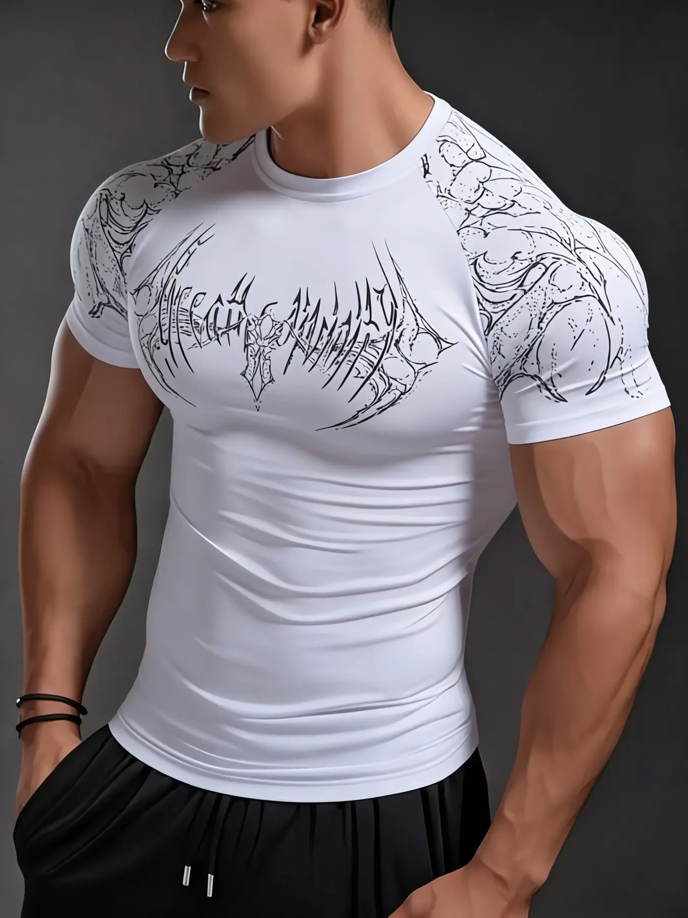 Men's Professional Fitness T-Shirt, Paris Print, Sporty Style, High Elasticity, Quick-Dry, Breathable, Slim Fit, Ideal for Gym Training