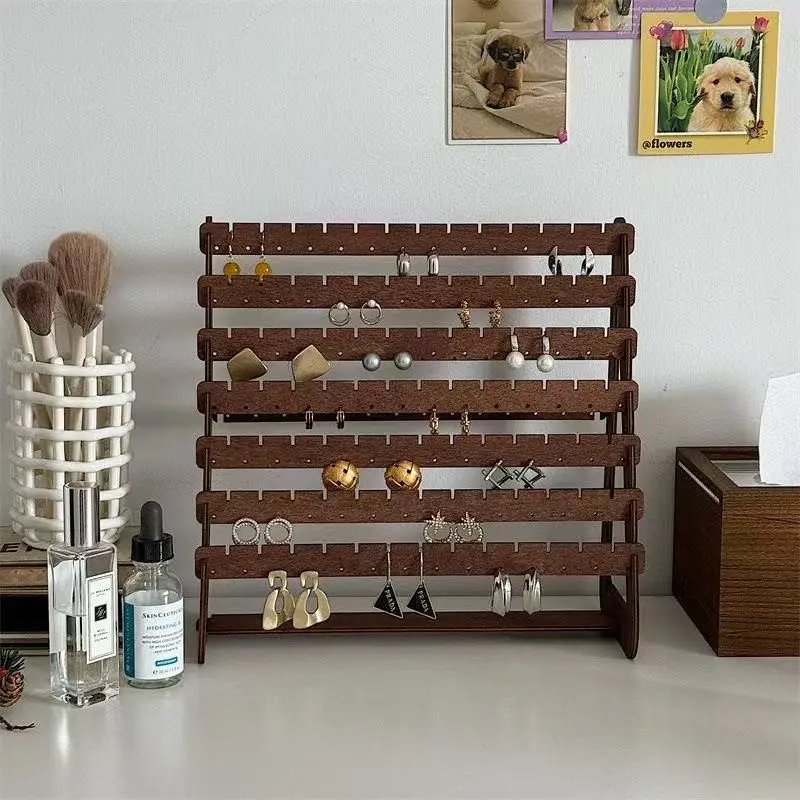 5. 7 Layer Walnut Color Earring Storage Rack, Simple High-End Desktop Organizer, Ear Stud Display Stand, Women's Home Jewelry Holder