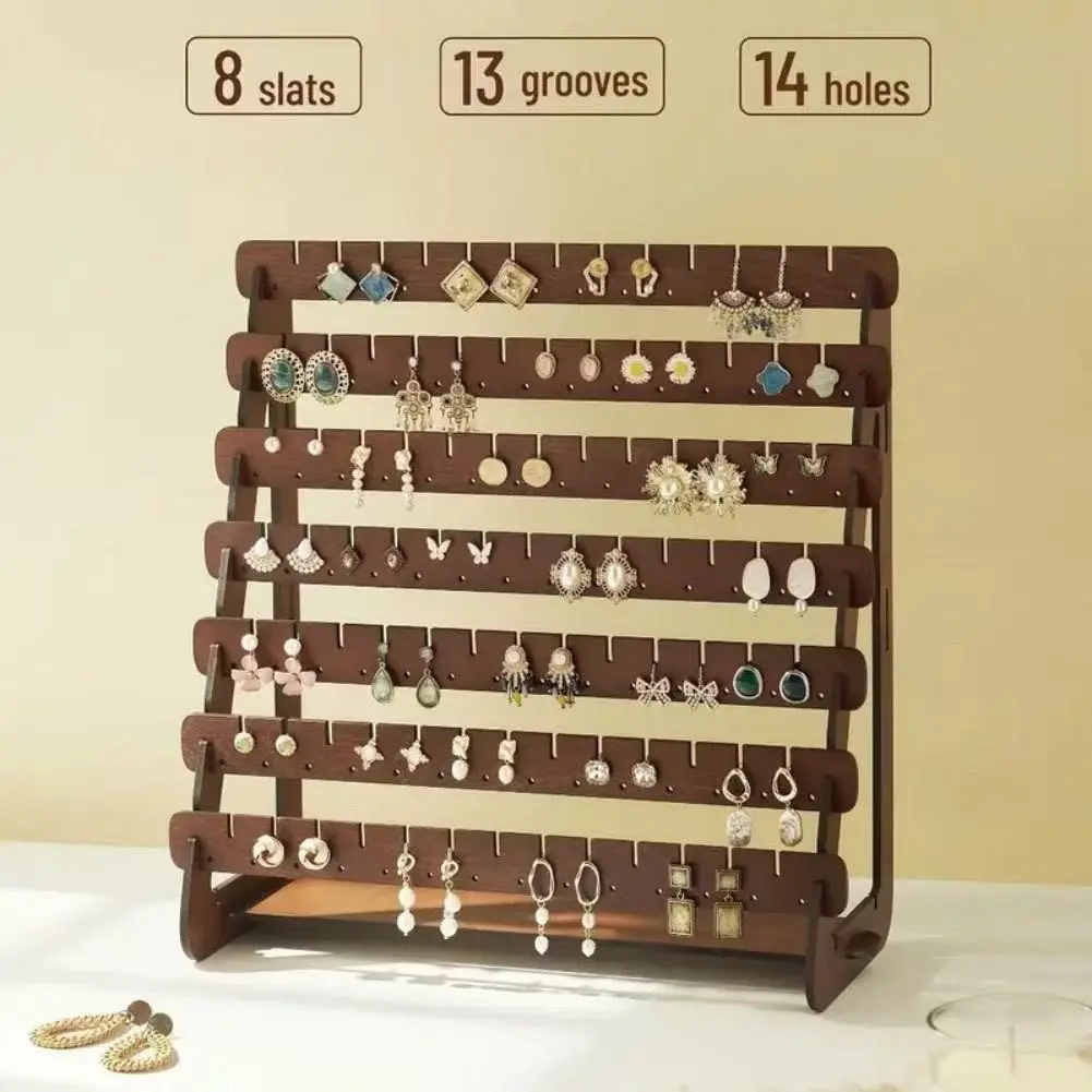 7 Layer Walnut Color Earring Storage Rack, Simple High-End Desktop Organizer, Ear Stud Display Stand, Women's Home Jewelry Holder