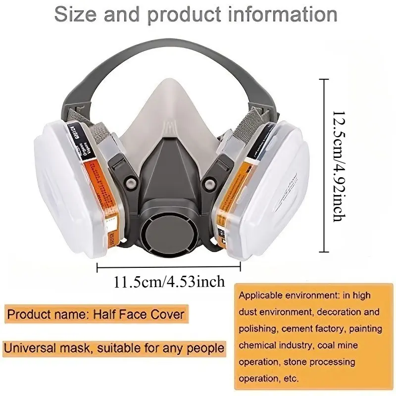●Size: one size fits all Package Included: 1 x Half Face Cover 2 x Replaceable Filter Boxes 2 x Plastic Covers 8 x Filters