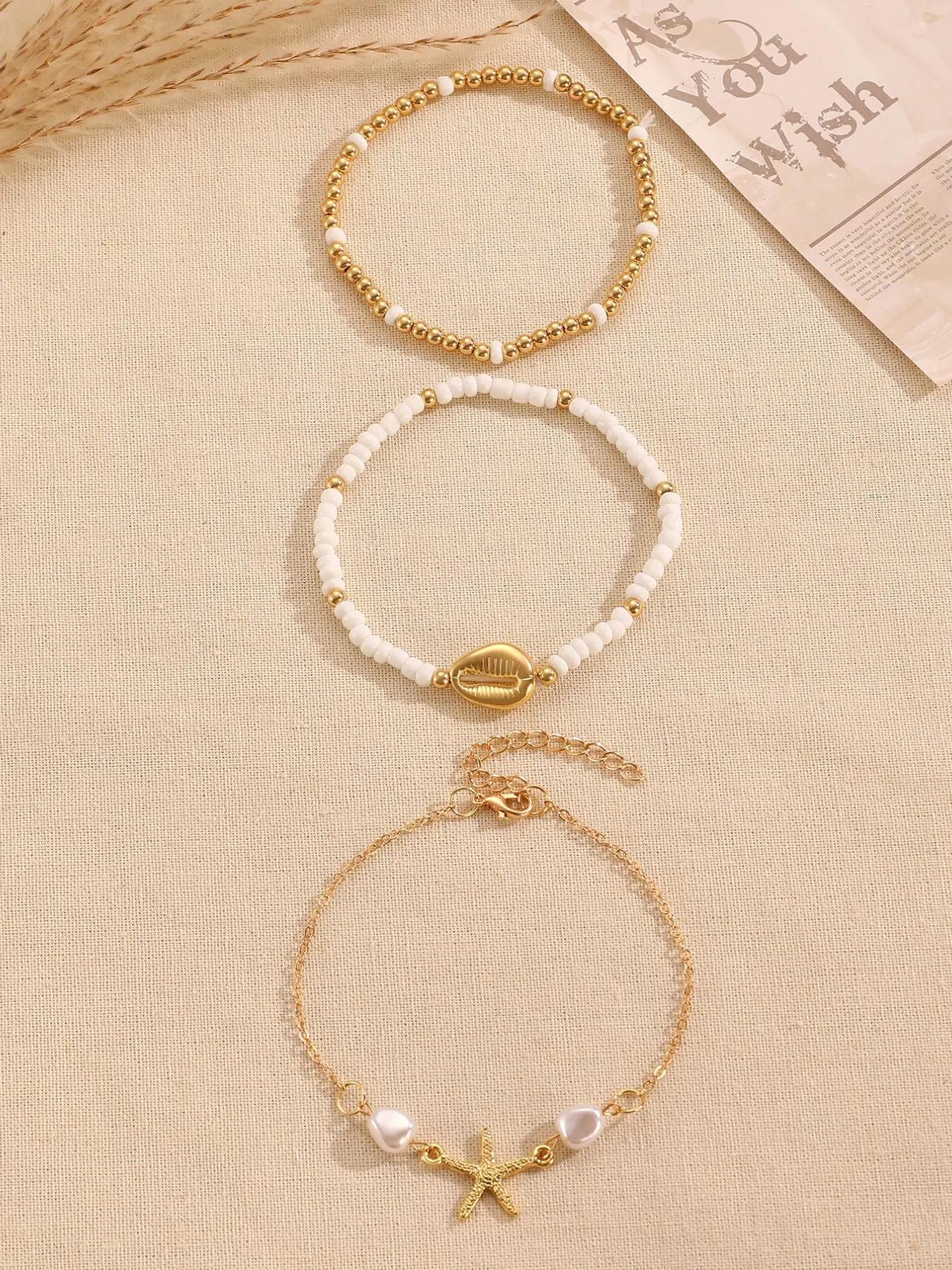 Three-Piece Summer Beach Anklet Set, Starfish Fish Shell Faux Pearl Design, Girl Jewelry, Fashion Accessory, Perfect for Daily