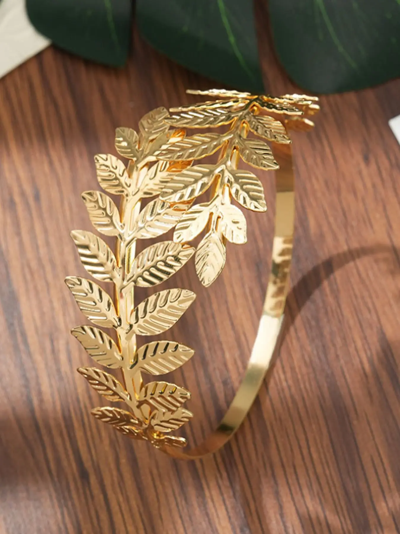 【Leaf Design】: Featuring a unique leaf pattern, this arm ring adds a touch of nature-inspired elegance to your outfit.