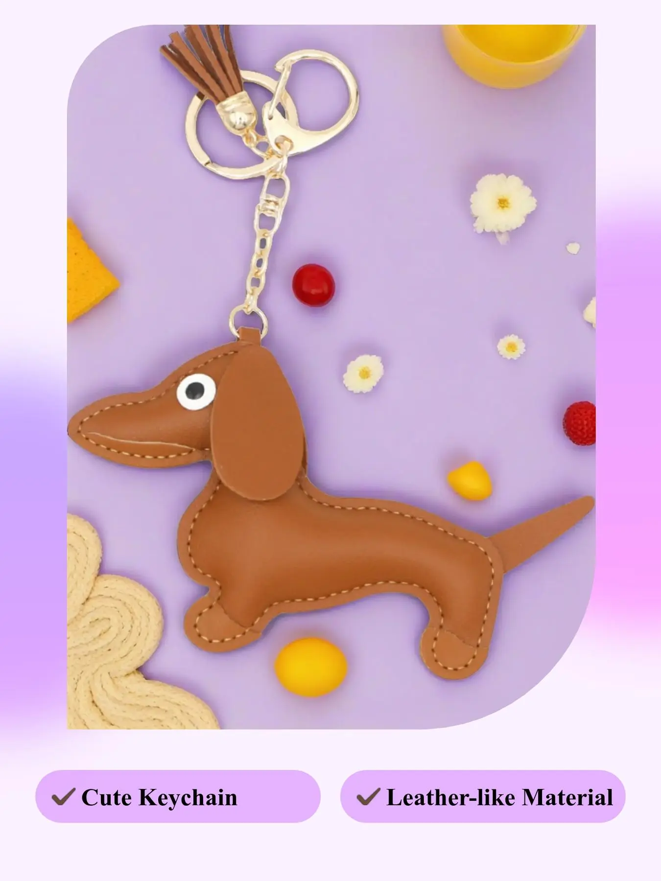 【Adorable dog shape】: Features a cute sausage dog design, adding a playful touch to bags, keys, and accessories.