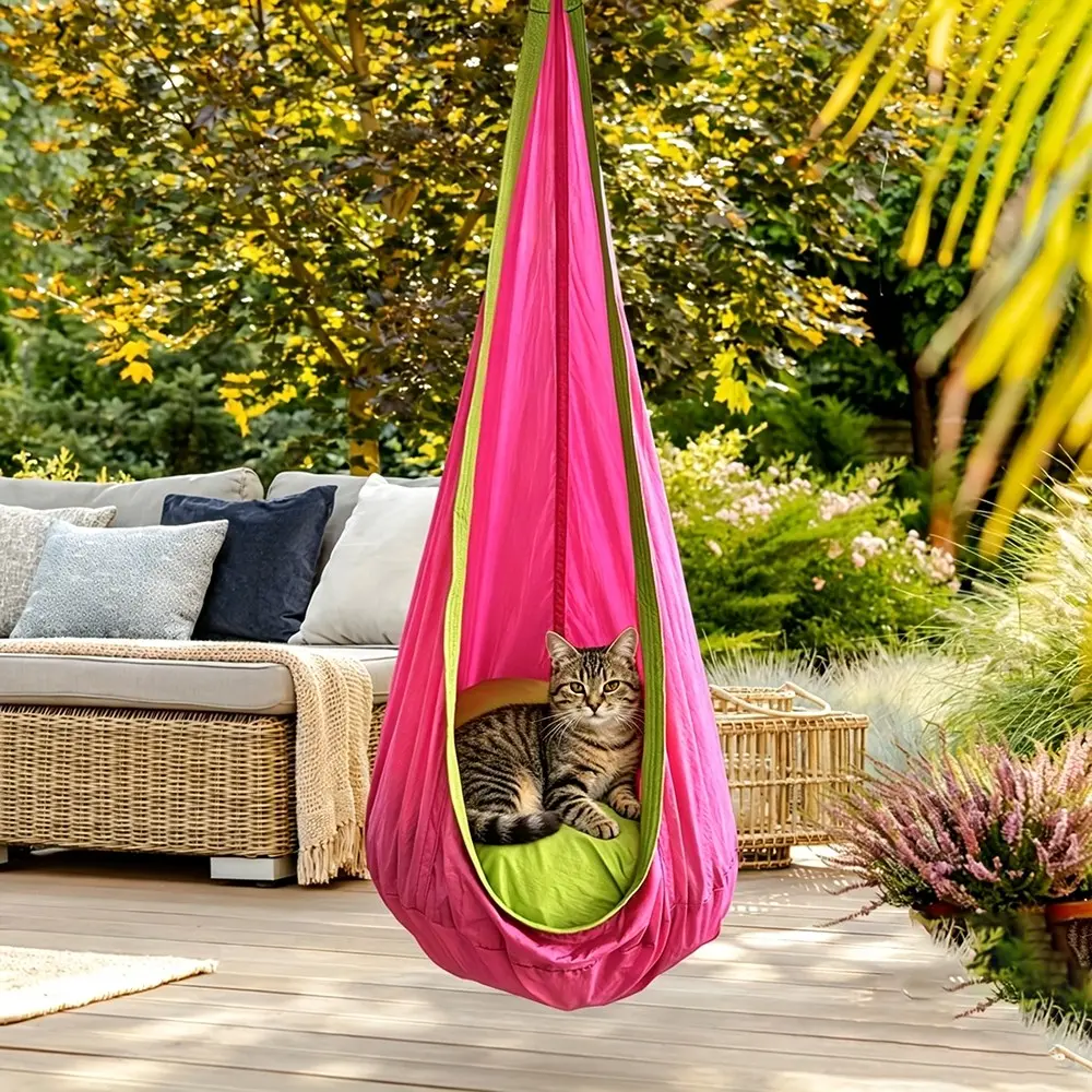 【Hanging Hammock】: Features a hanging hammock chair design, providing a cozy and relaxing seating option.