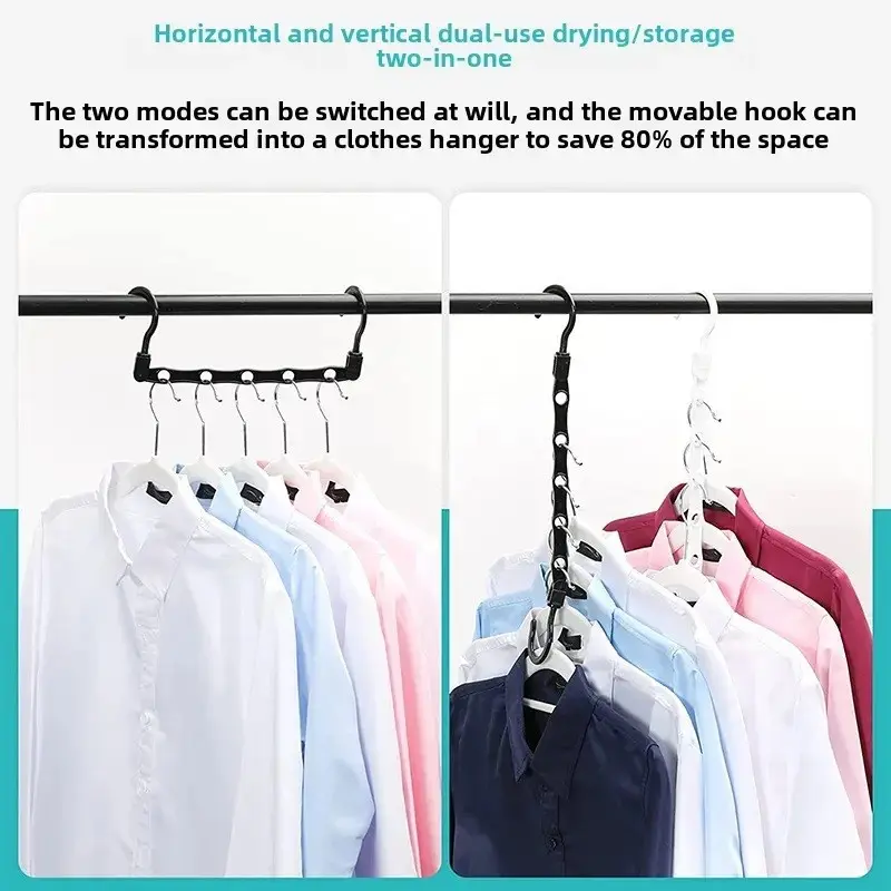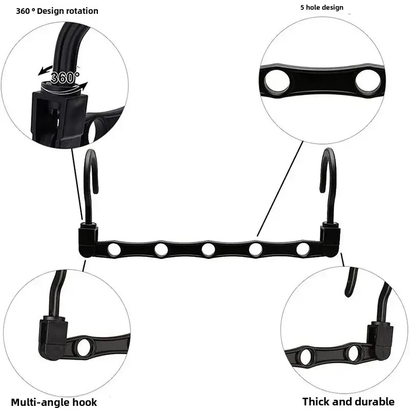 5. 2pcs Creative Windproof Magic Clothes Hanger, Multifunctional PP Plastic Rotating Foldable Hanger, 5-Hole Storage Hook, Small Non-Slip Home Travel Hanger