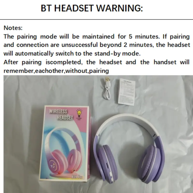 Wireless Headphones, Over-ear Design Headphone with Light Effect, Foldable Headphones Suitable for Gaming, Office, Queue, Audio