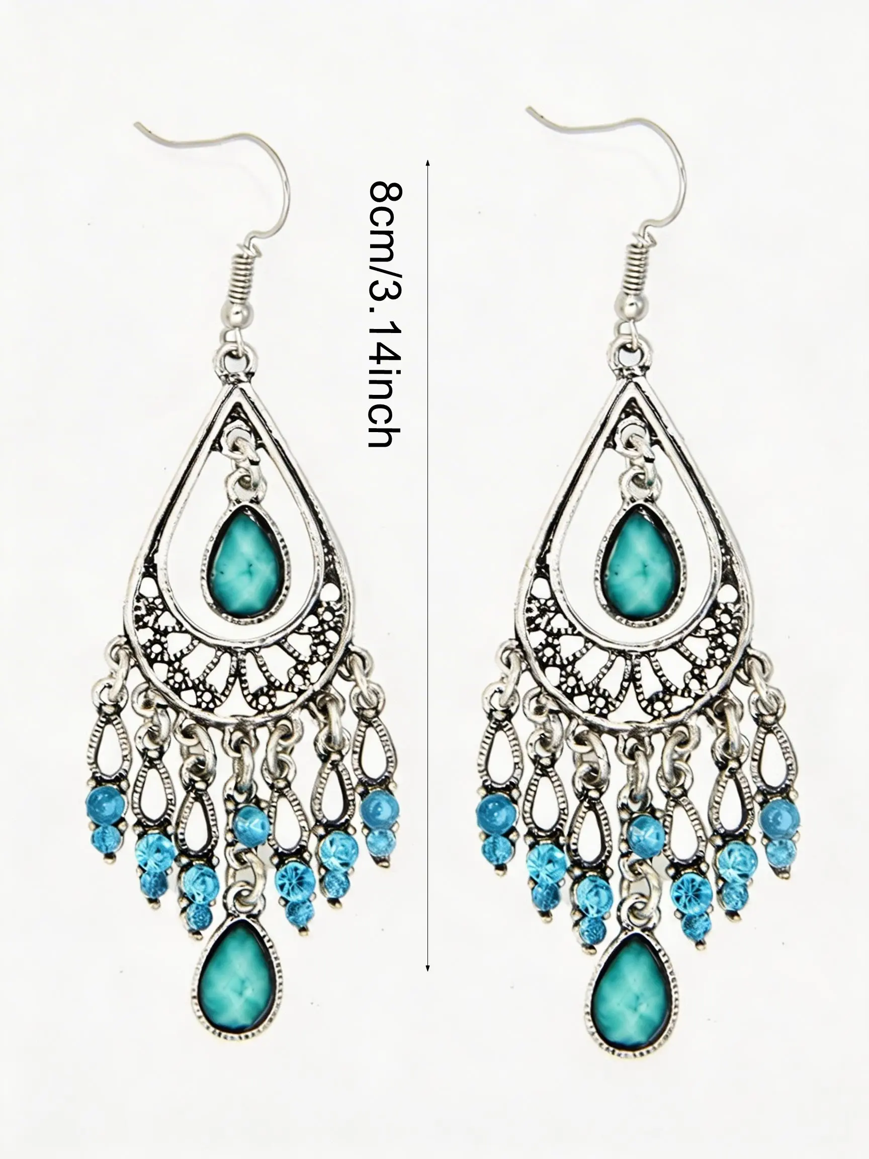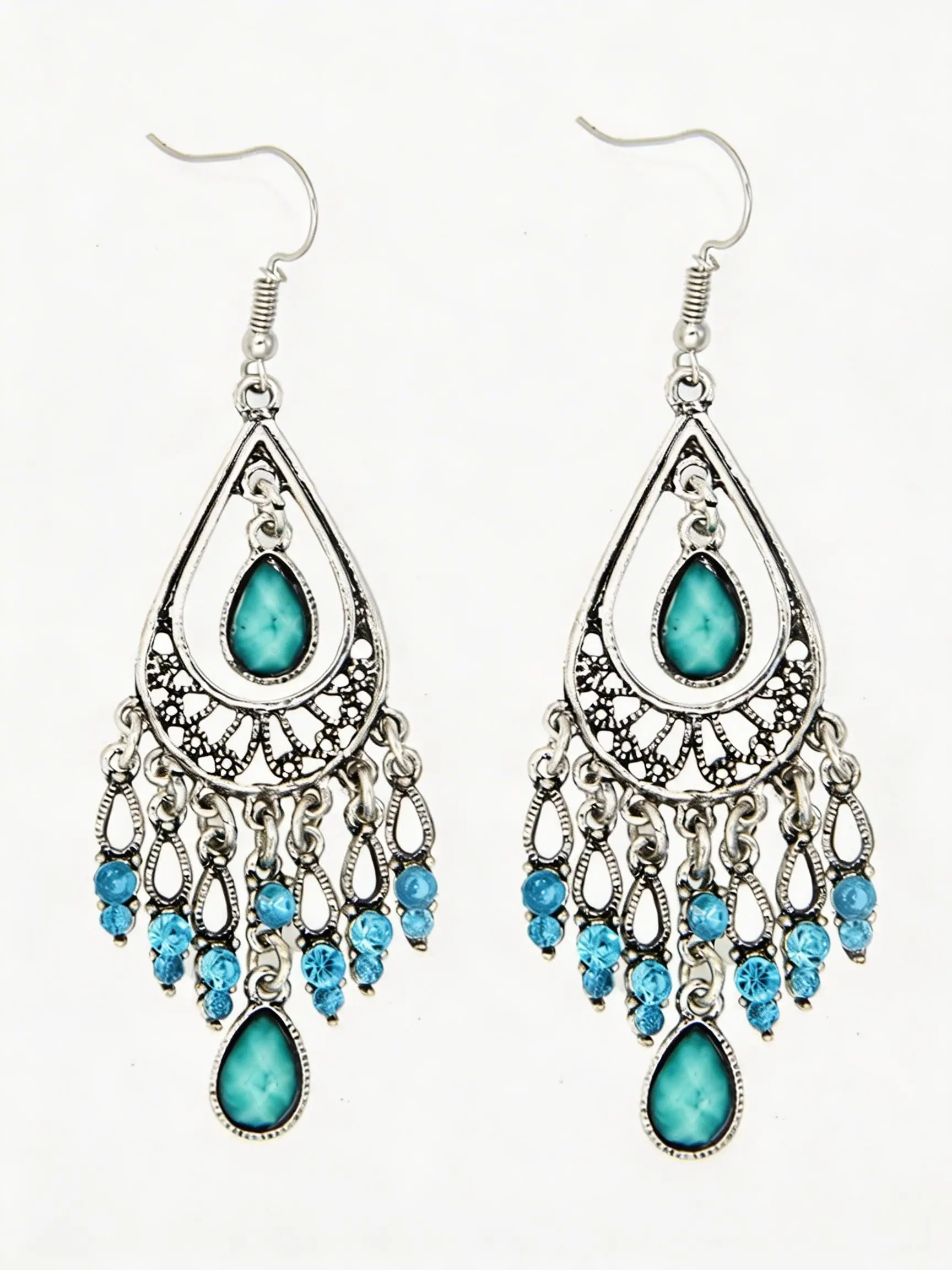 Luxurious Turquoise Textured Drop Earrings, Hook Style, Vintage Floral Design, Perfect for Weddings, Parties, Festivals, Women