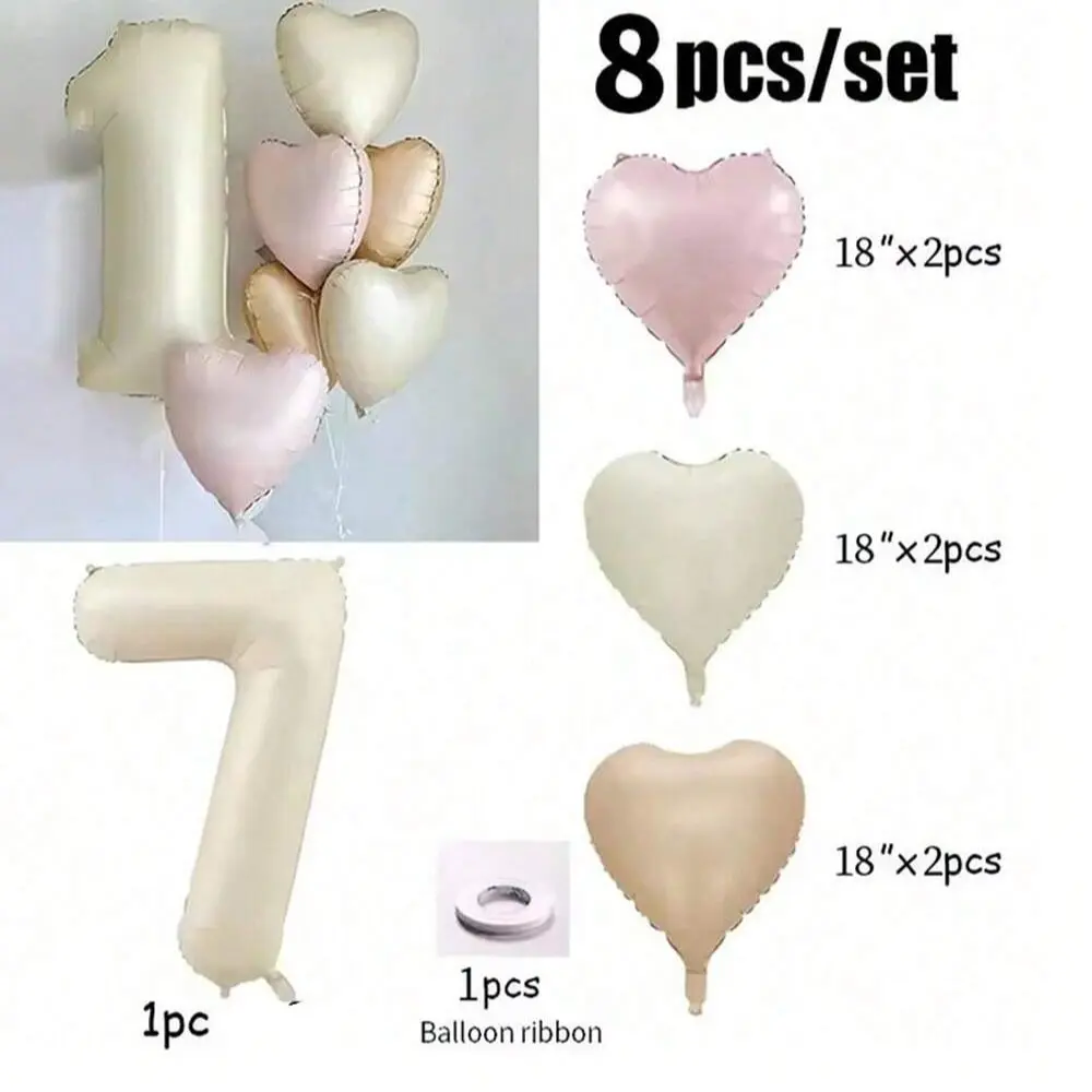 Aluminum Foil Heart Number Balloons Set of 8, Perfect for Birthday Parties, Decorative Party Supplies, Fun and Festive Decoration