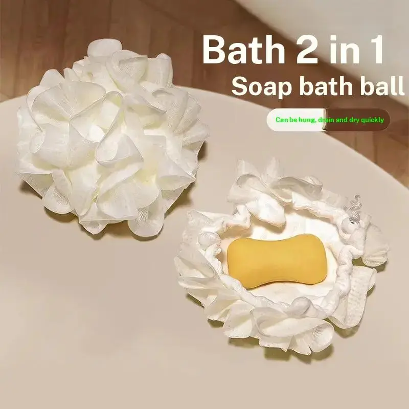 Two-In-One Soap Wrapped Bath Ball, Dual-Sided Use, Rich Lather, Unisex Exfoliating Tool, Travel-Friendly Bathroom Accessory