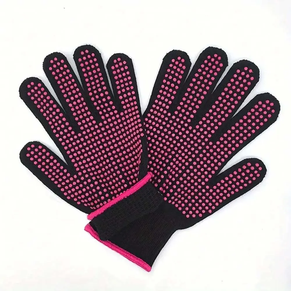 2Pcs Double-Sided Beaded Gloves - PVC Anti-Slip Hair Styling Gloves For Curly And Straight Hair, Durable Woven Fabric - Heat Insulated Gloves