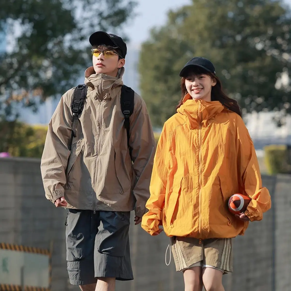 Outdoor Sunscreen Clothing Summer Hiking Jackets provide professional UPF50+ ultraviolet protection, effectively blocking harmful UV rays for your skin during outdoor activities. Designed as a stylish couples hooded jacket, it is made of lightweight, breathable, and quick-drying fabric that keeps you cool, dry, and comfortable all day long in hot summer weather. The hooded design offers extra sun protection for your head and neck, while the relaxed fit ensures maximum comfort and free movement for hiking, traveling, fishing, camping, cycling, and other outdoor sports. Suitable for both men and women, this versatile sun protection jacket combines practical functionality with a casual fashion style, making it perfect for outdoor adventures, daily commuting, beach trips, and casual summer wear. Durable, soft, and lightweight, it is an essential piece of outdoor gear for anyone who loves spending time outdoors.Material: High-quality