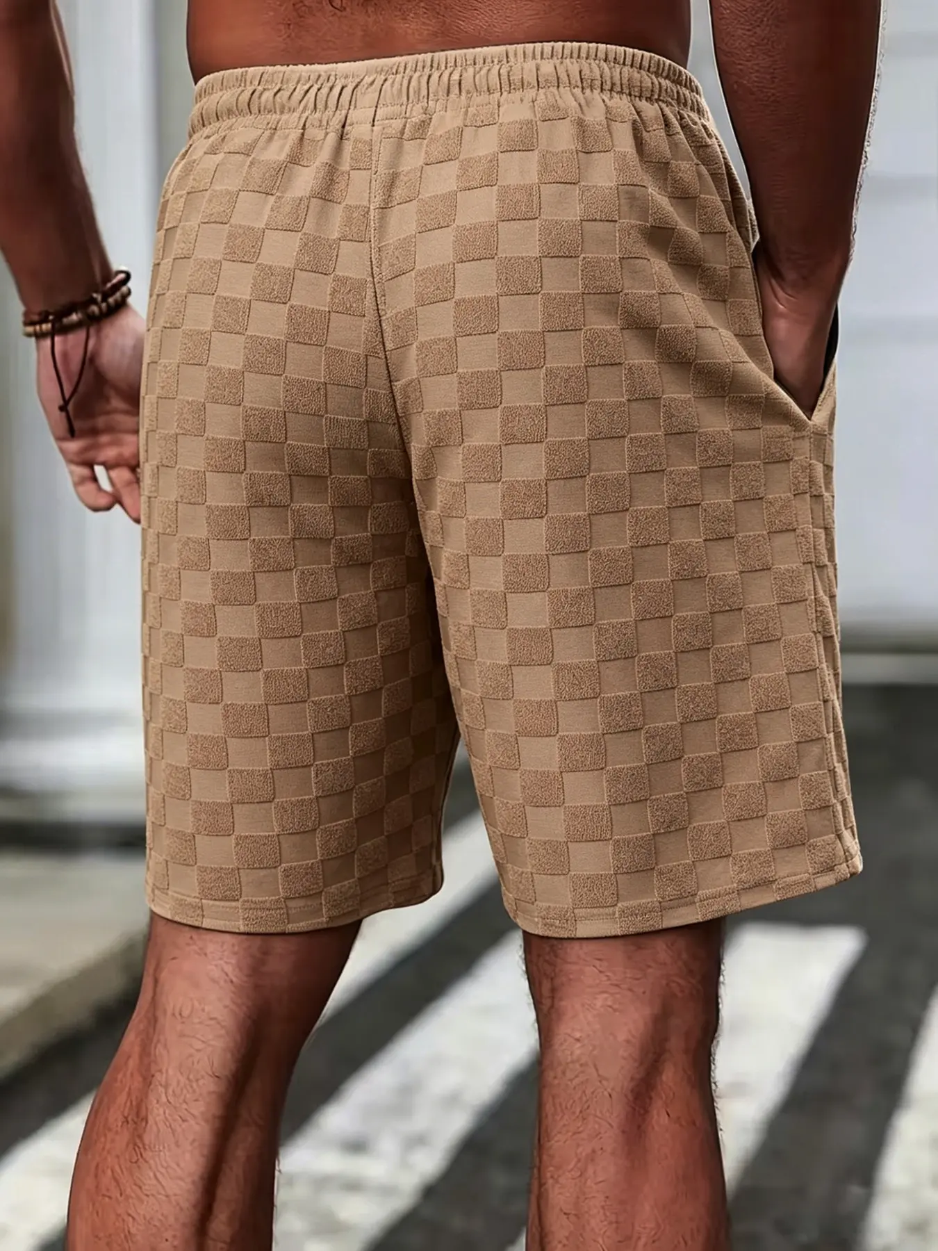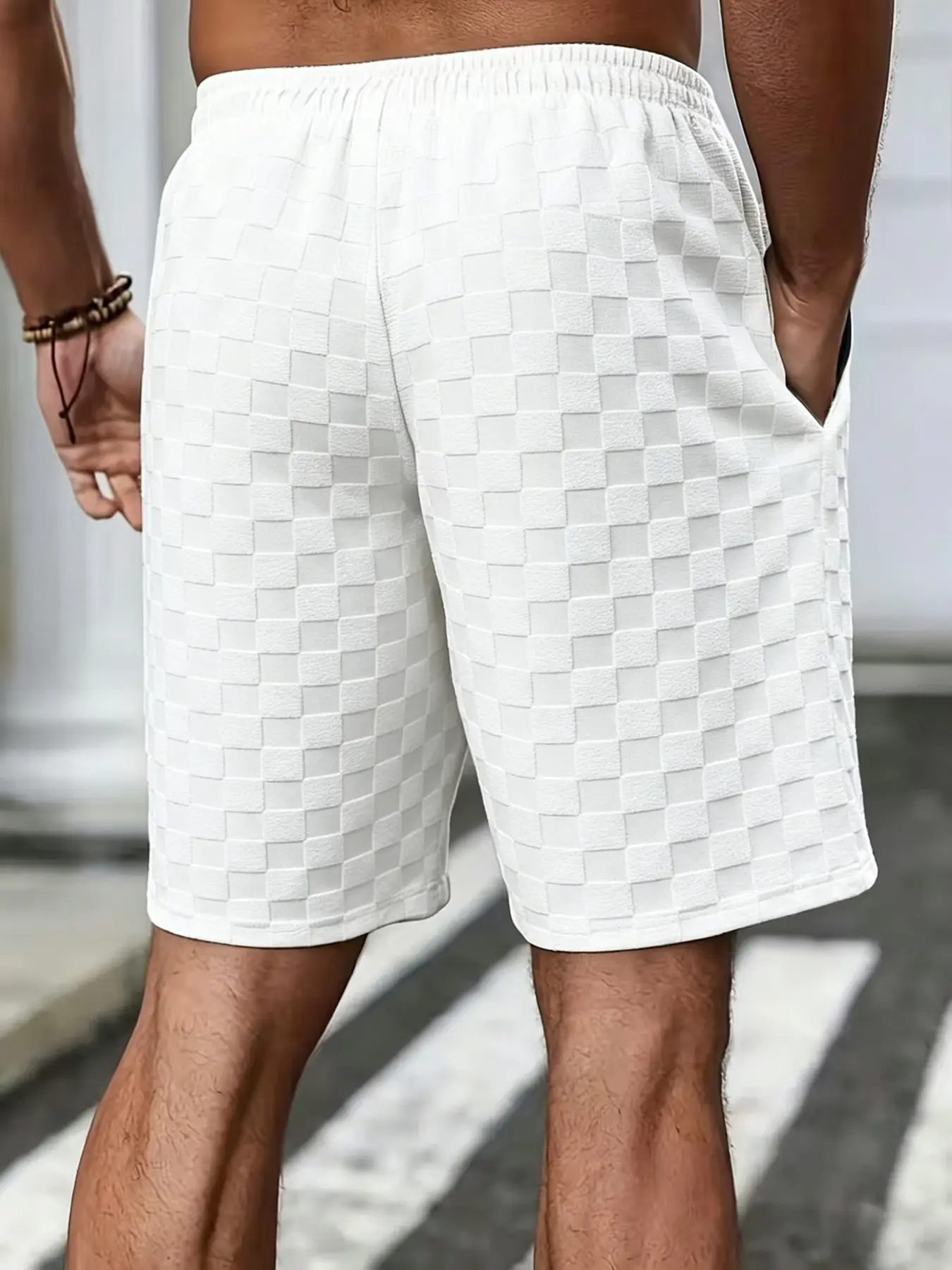 Men's Waffle Check Casual Shorts, Breathable Skin-Friendly Loose Fit Straight Leg Five-Quarter Pants, Daily Commute Versatile Beachwear