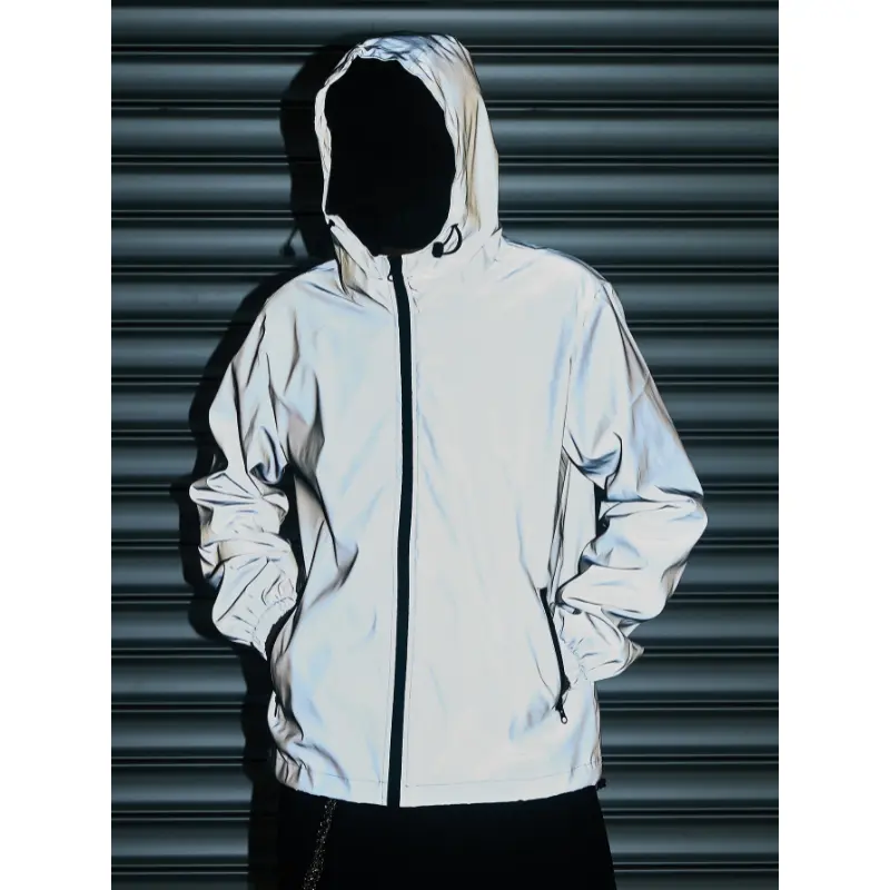 Night Reflective Clothes Spring New Men's Hooded Jacket combines eye-catching night reflective detailing with trendy hip-hop streetwear style, designed for both men and couples, featuring a comfortable hooded construction, windproof fabric, and a relaxed fit perfect for outdoor running, daily commuting, street fashion, and casual wear in spring, made of soft, lightweight, and durable material that ensures all-day comfort and practicality, available in sizes S5XL to suit various body types, ideal for outdoor activities, daily outings, weekend gatherings, parties, and urban street style looks, easy to match with T-shirts, hoodies, cargo pants, jeans, and sneakers to create a stylish, safe, and personalized outfit, a must-have trendy and functional windproof coat for the modern street fashion lover.Material: High-quality