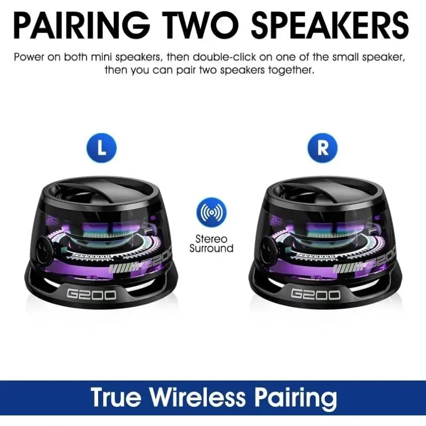 Cool RGB Light: The small bluetooth speakers wireless has a transparent body with RGB light effects, and an ingenious combination of sound and visuals, our small portable speaker is a visual delight.