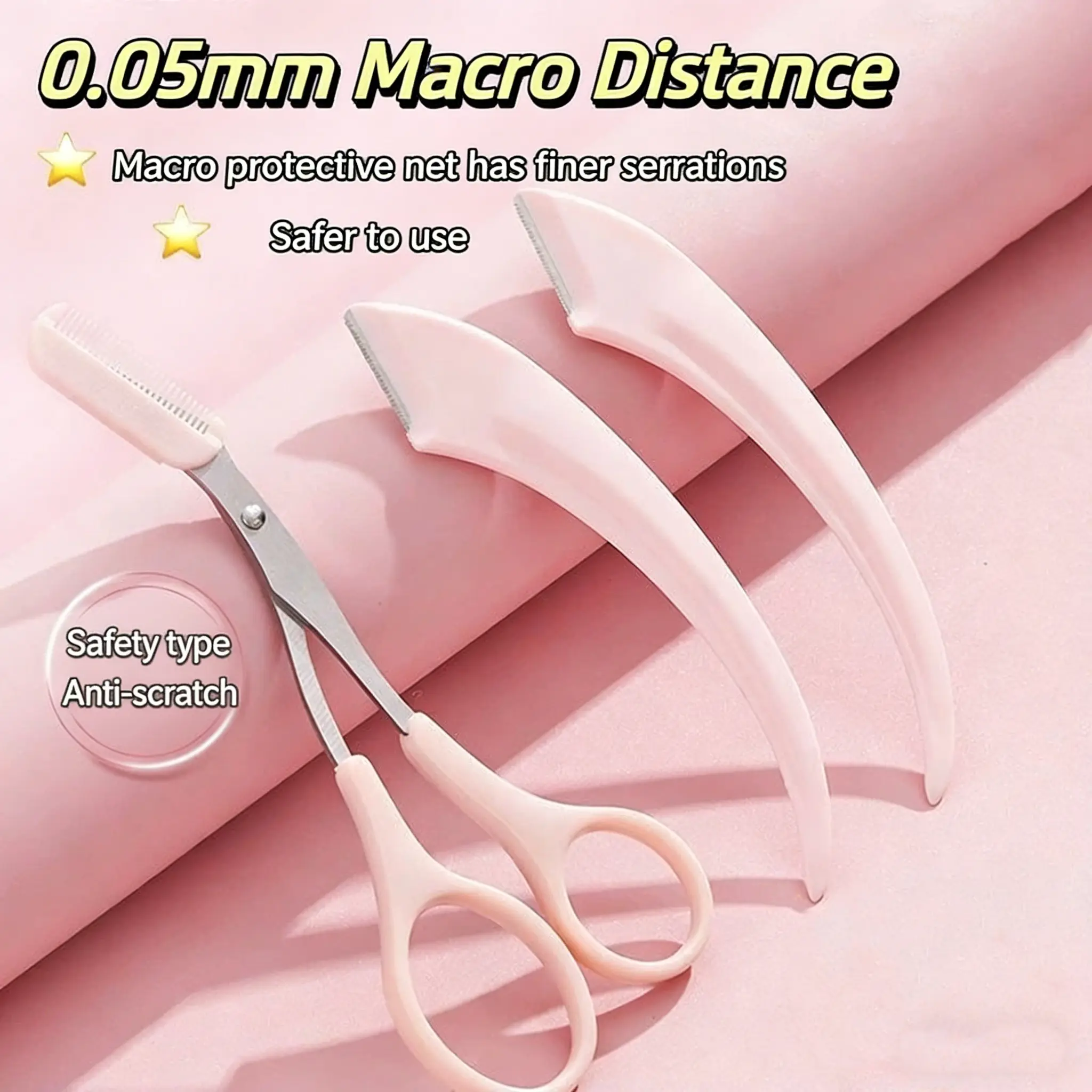 3pcs/lot Eyebrow Razor and Precision Eyebrow Scissors Grooming Kit, Safety Micro-Blade Razor, Stainless Steel Blades, Makeup Tool, Beauty Accessories