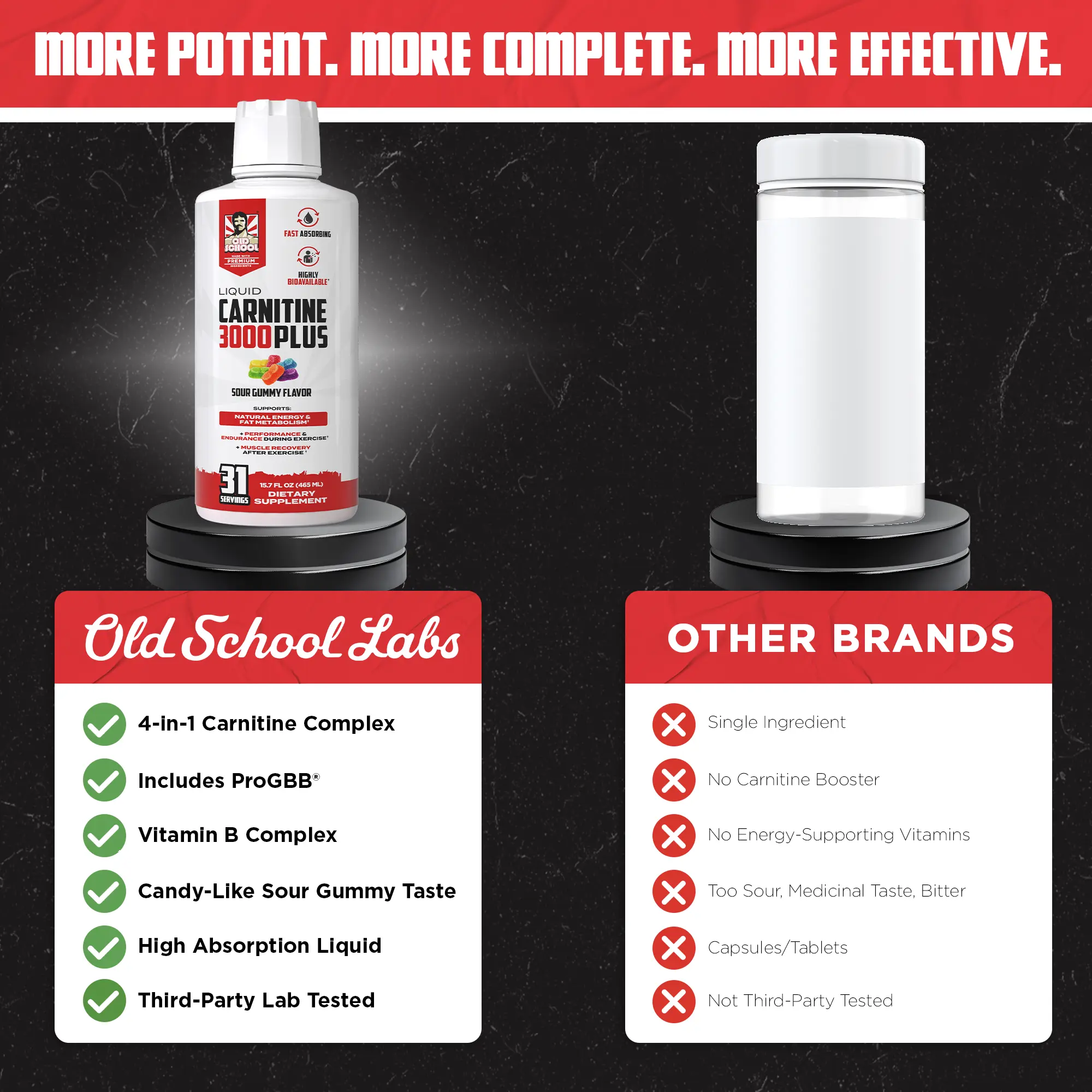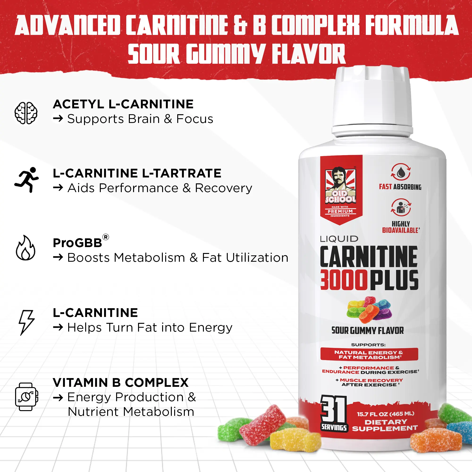 Old School Labs Liquid L-Carnitine 3000mg Plus â Sour Gummy (Now in 3 Packs)